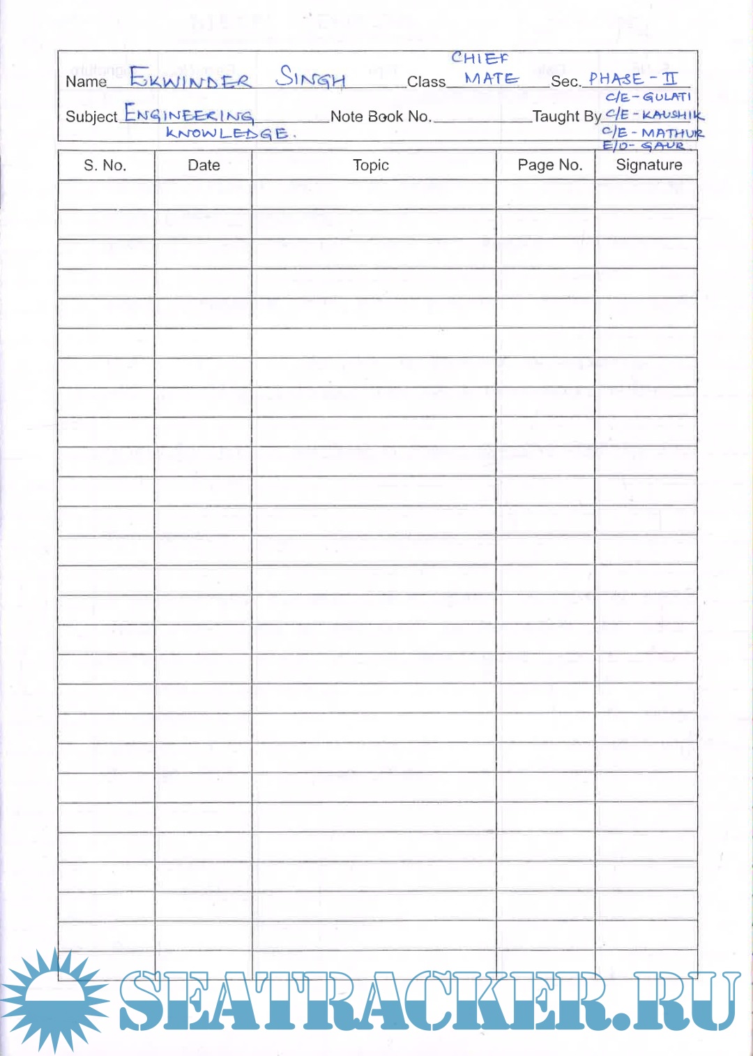 Theory Hand Written Notes from Past Question Papers of Mercantile Marine Department (MMD), India Examinations for Phase II (Chief Mate F.G.).