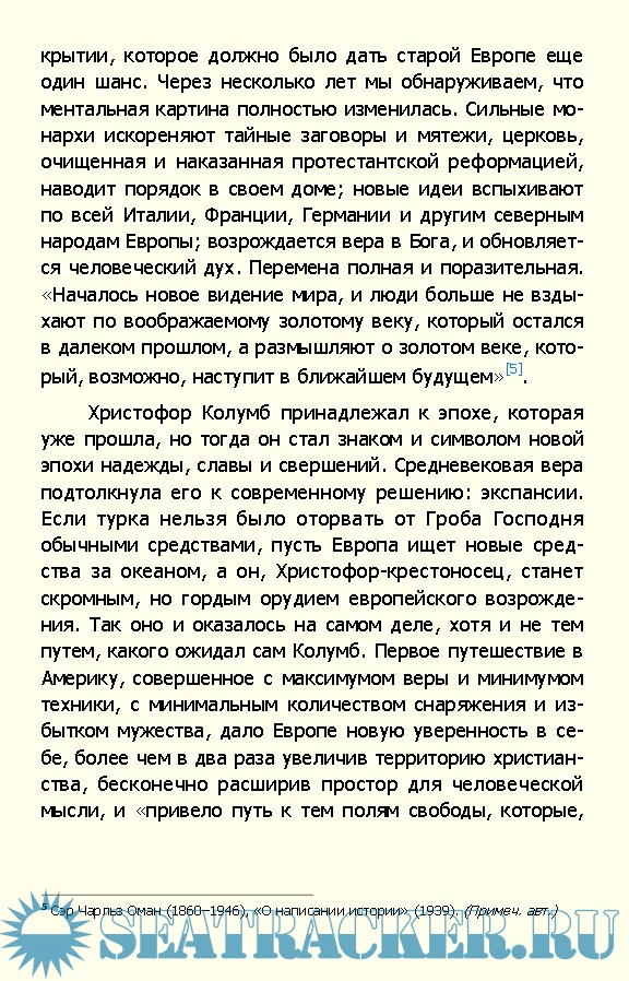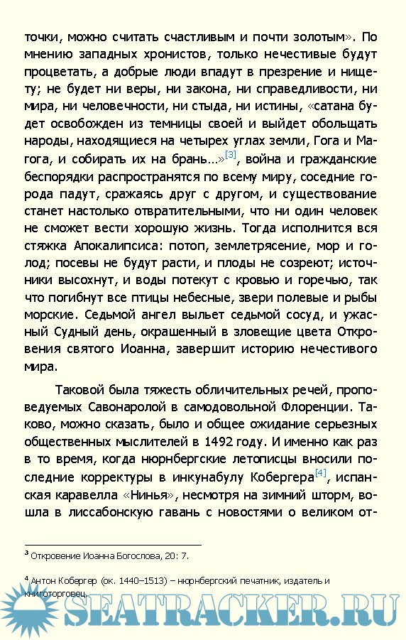 Описание: С.Э. Морисон, будучи не только профессиональным историком, но и военным моряком, стал первым биографом Колумба, который пересек Атлантический океан на парусном судне, повторив маршрут прославленного морехода. В книге, удостоенной Пулитцеровской премии за достоверное и увлекательное жизнеописание Христофора Колумба, большое внимание уделено четырем морским экспедициям, в ходе которых были открыты морской путь в Индию и Новый Свет, рассмотрены особенности кораблестроения и навигационного дела того времени и отражен дух эпохи Великих географических открытий в целом.