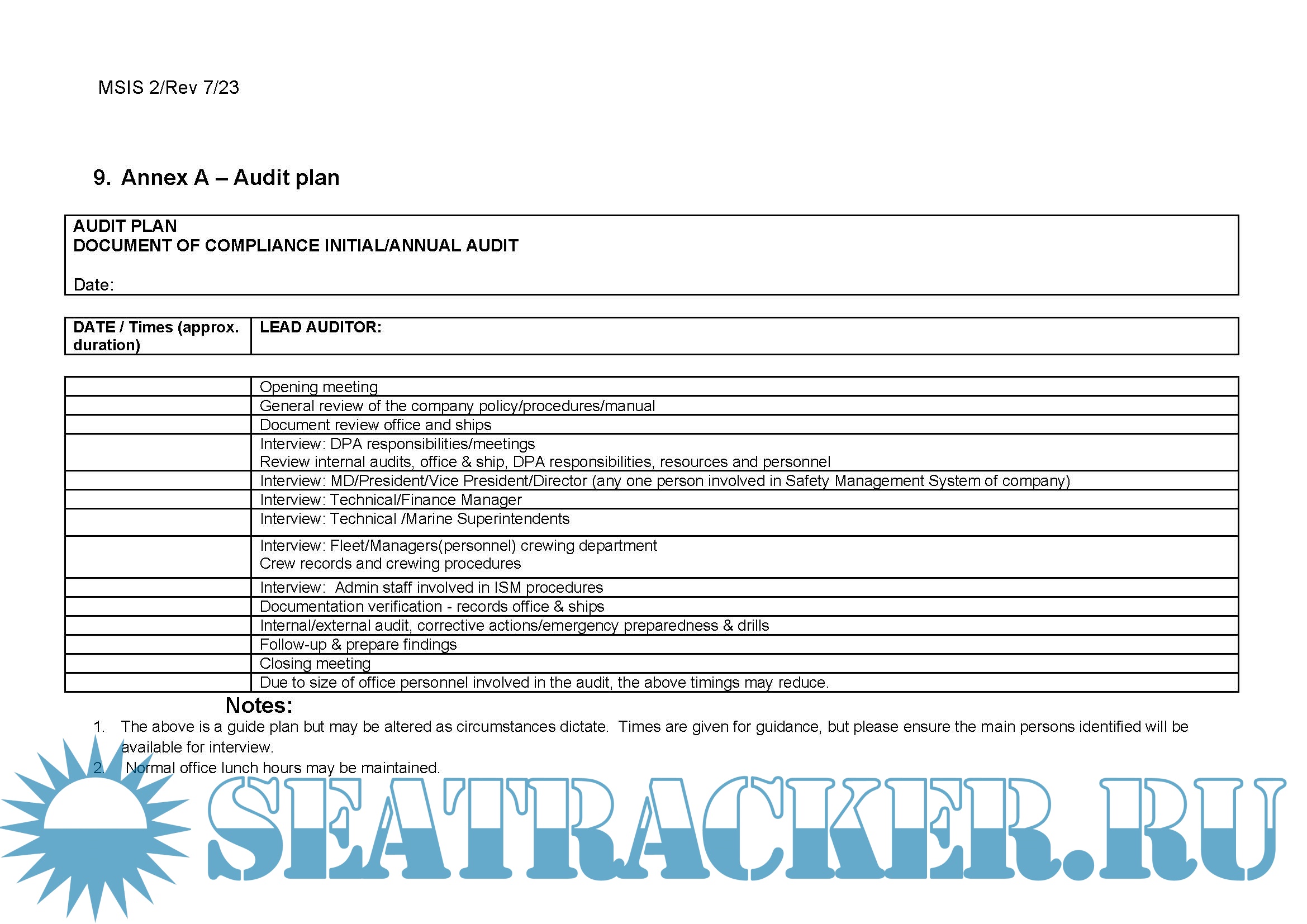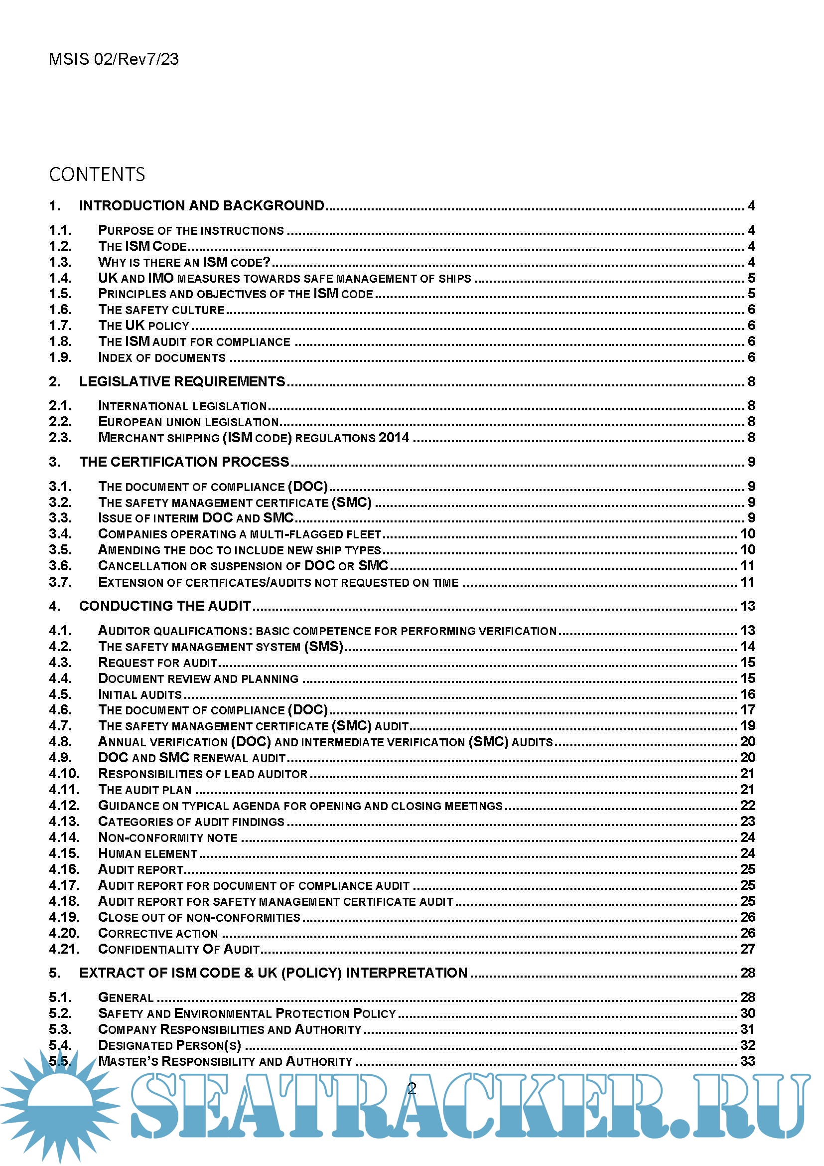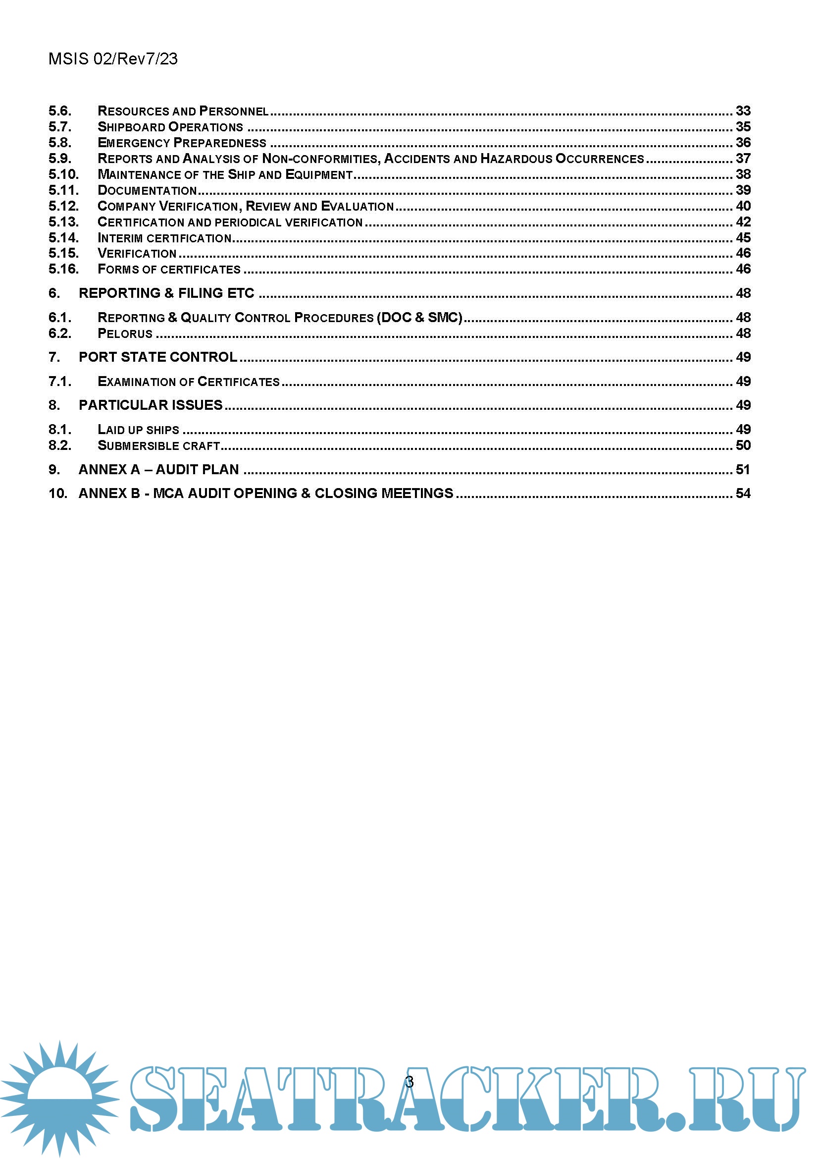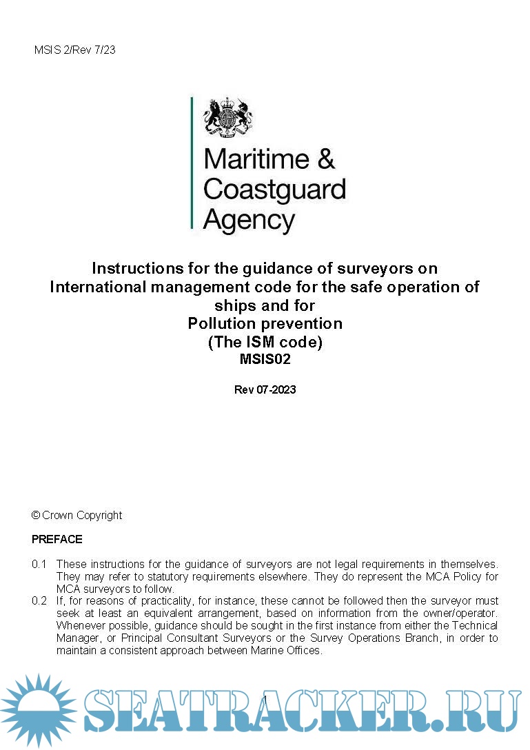 Year: 2023 Language: English Author: MCA Genre: Guide Edition: Rev 07-2023 Format: PDF Quality: eBook Pages count: 54 Description: These Instructions to Surveyors have been produced by the Maritime and Coastguard Agency (MCA), an Executive Agency of the Department for Transport (DfT), for the guidance of surveyors auditing safety management systems both at sea and ashore. Additionally, they provide guidance for those concerned with the procedures adopted by the MCA for carrying out audits for verification of compliance with the International Safety Management Code for the Safe Operation of Ships and for Pollution Prevention (ISM Code).