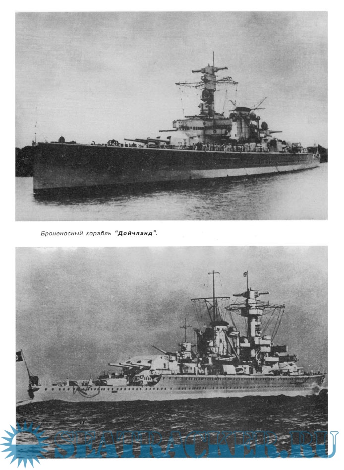 Без преувеличений можно сказать, что создание Дойчланд и однотипных кораблей полностью меняет привычную стратегию и тактику войны на море, равно как и многие взгляды на кораблестроение. Naval Engineering Journal, июнь 1933 г. История проектирования, строительства, боевой службы броненосных кораблей типа Дойчланд, фото, схемы.