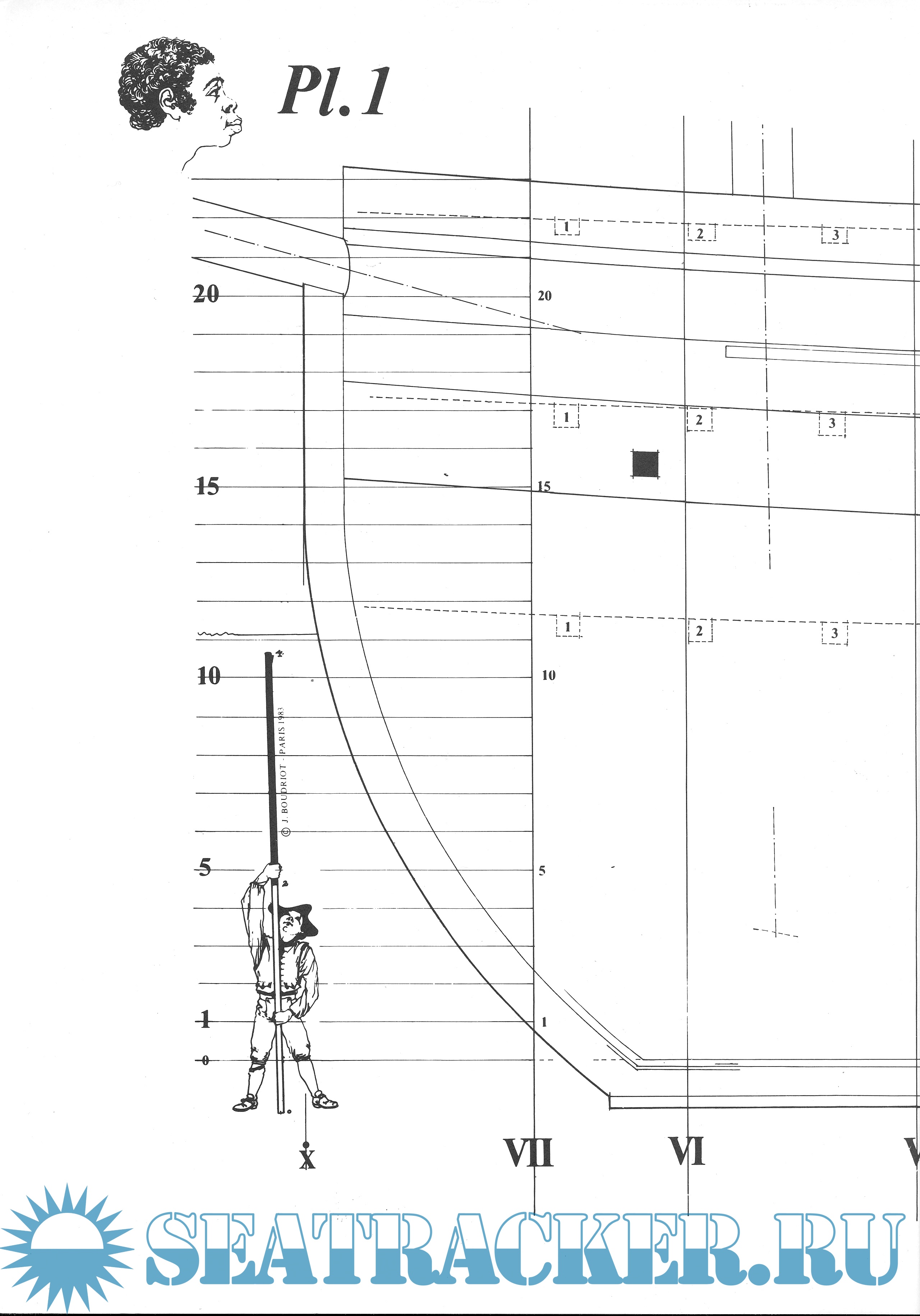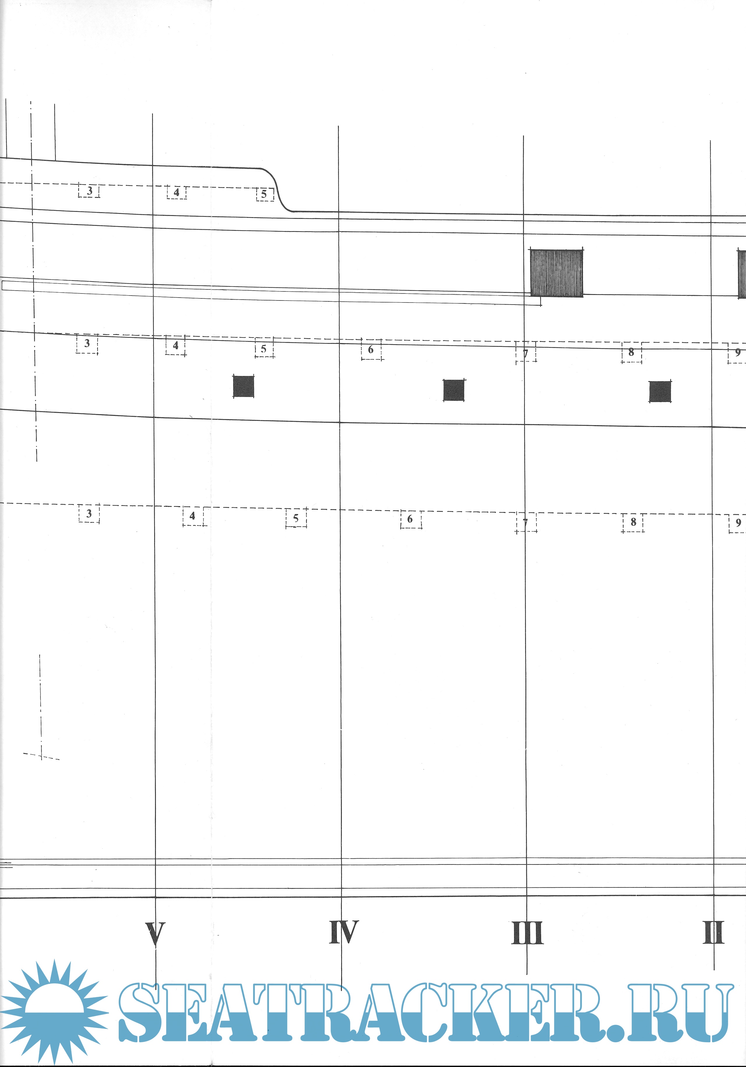 Описание: Чтобы предоставить все схемы, нужные для постройки корпуса и необходимых на невольничьем корабле помещений, понадобилось 47 листов чертежей большого формата.