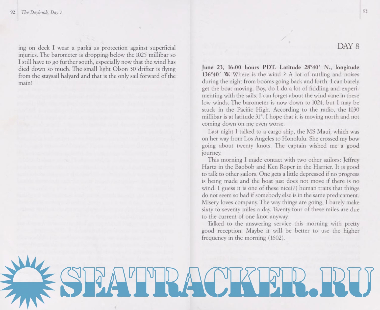 Description: Describes the author's thoughts and experiences sailing alone on the Pacific Ocean and offers tips on sailing.