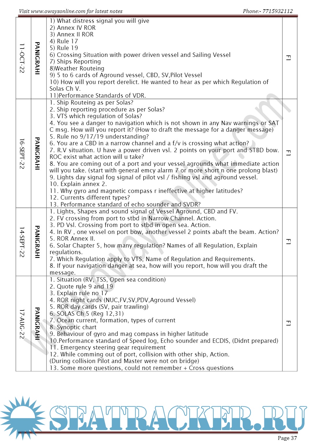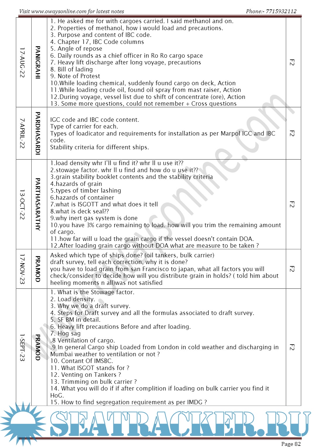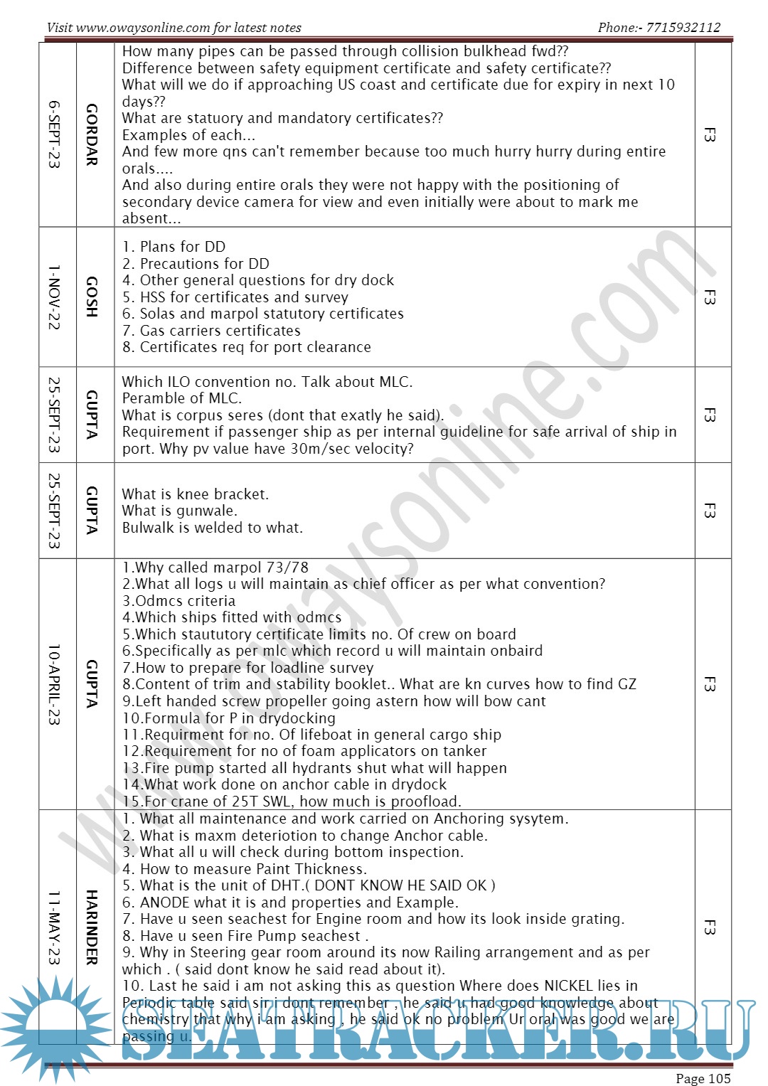 Description: Orals Question Bank for Chief Mate F.G. Mercantile Marine Department (MMD), India Examinations. Segregated as per Functions / Surveyors/ Dates.