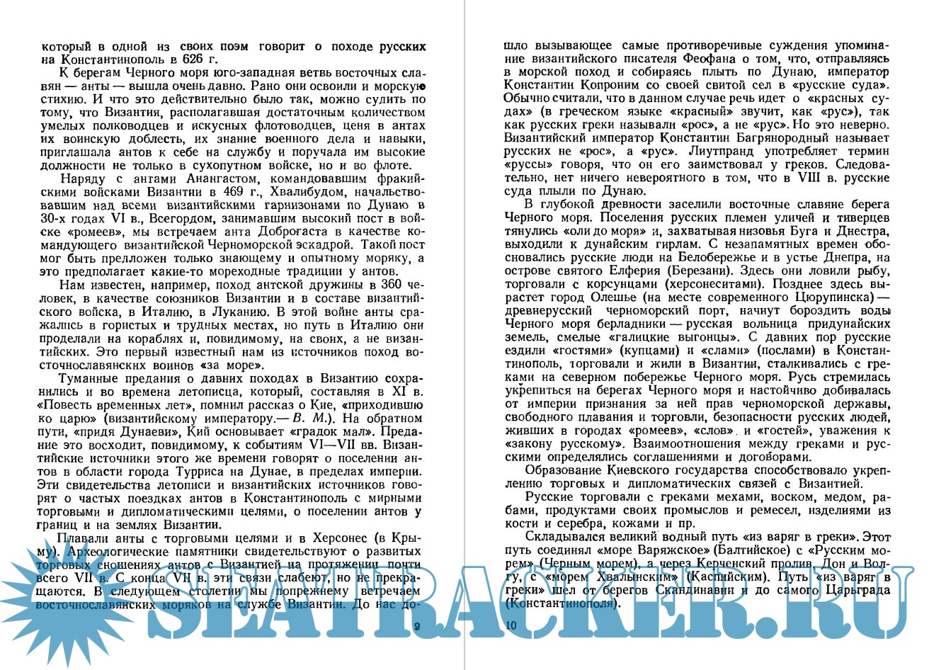 Описание: Автор попытался обобщить материал, накопившийся к сегодняшнему дню, и дает сводку сведений по началу мореходства на Руси. Ибо так начинать русскую историю, как это делала старая официальная дворянско-буржуазная историческая наука означает начинать ее не с начала; так историю мореходства на Руси, как это имеет место в указанных трудах означает приступить к повествованию где-то с середины книги, так начинать историю русского мореходства означает возрождать лживую и антинаучную норманскую теорию.