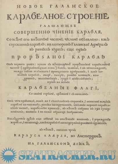 1) «Новое галанское карабелное строение, глашающее совершенно чинение карабля со всеми его внешними честми, числами объявлено; как спускают карабль; в предь галанской адмирал в разных видах»;