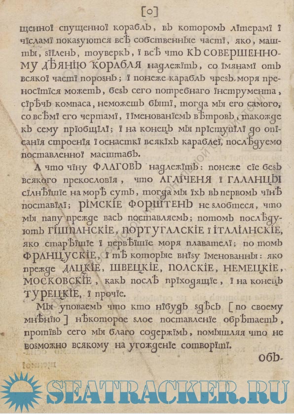 2) «Описание спуска карабля», оснастки, описание кораблей разных наций в разных морях, описание компаса, различных инструментов и кранов;
