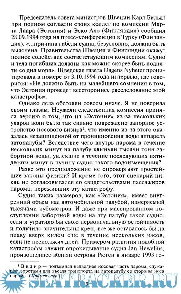 Год выпуска: 2007 Язык: русский Автор: Рабе Ютта Жанр: История Издательство: Центрполиграф Формат: PDF Качество: Изначально компьютерное (eBook) Количество страниц: 298 Описание: Загадки истории, несомненно, завораживают каждого, кто к ним прикасается. К таким тайнам относится и крушение парома "Эстония", которое произошло в ночь с 27 на 28 сентября 1994 года. В результате трагедии погибло 852, а спаслось всего 137 человек. Немецкая журналистка и продюсер Ютта Рабе провела свое расследование.