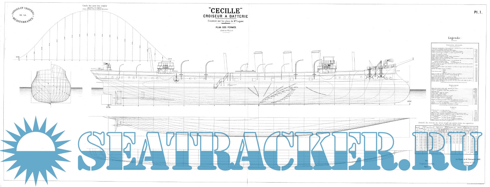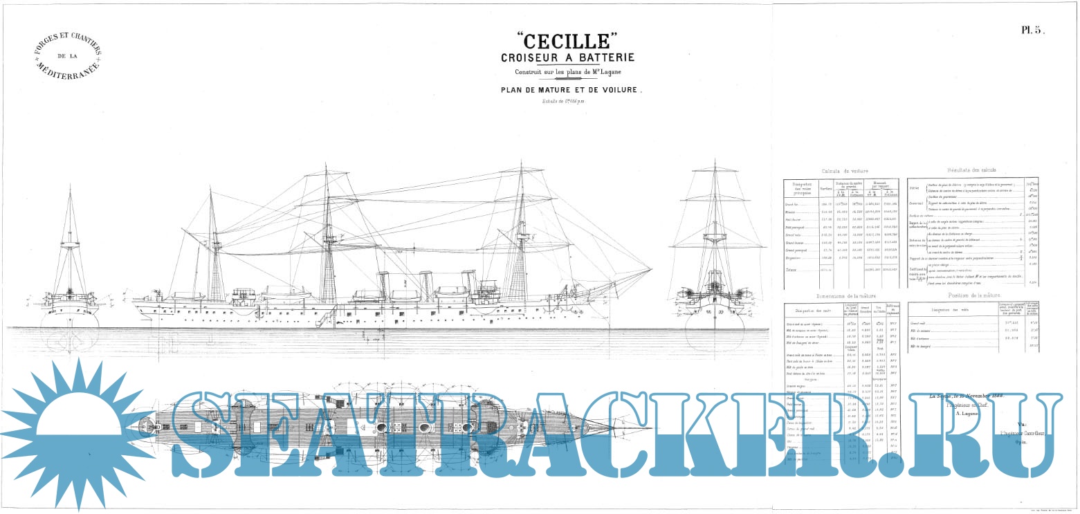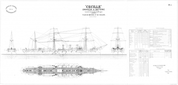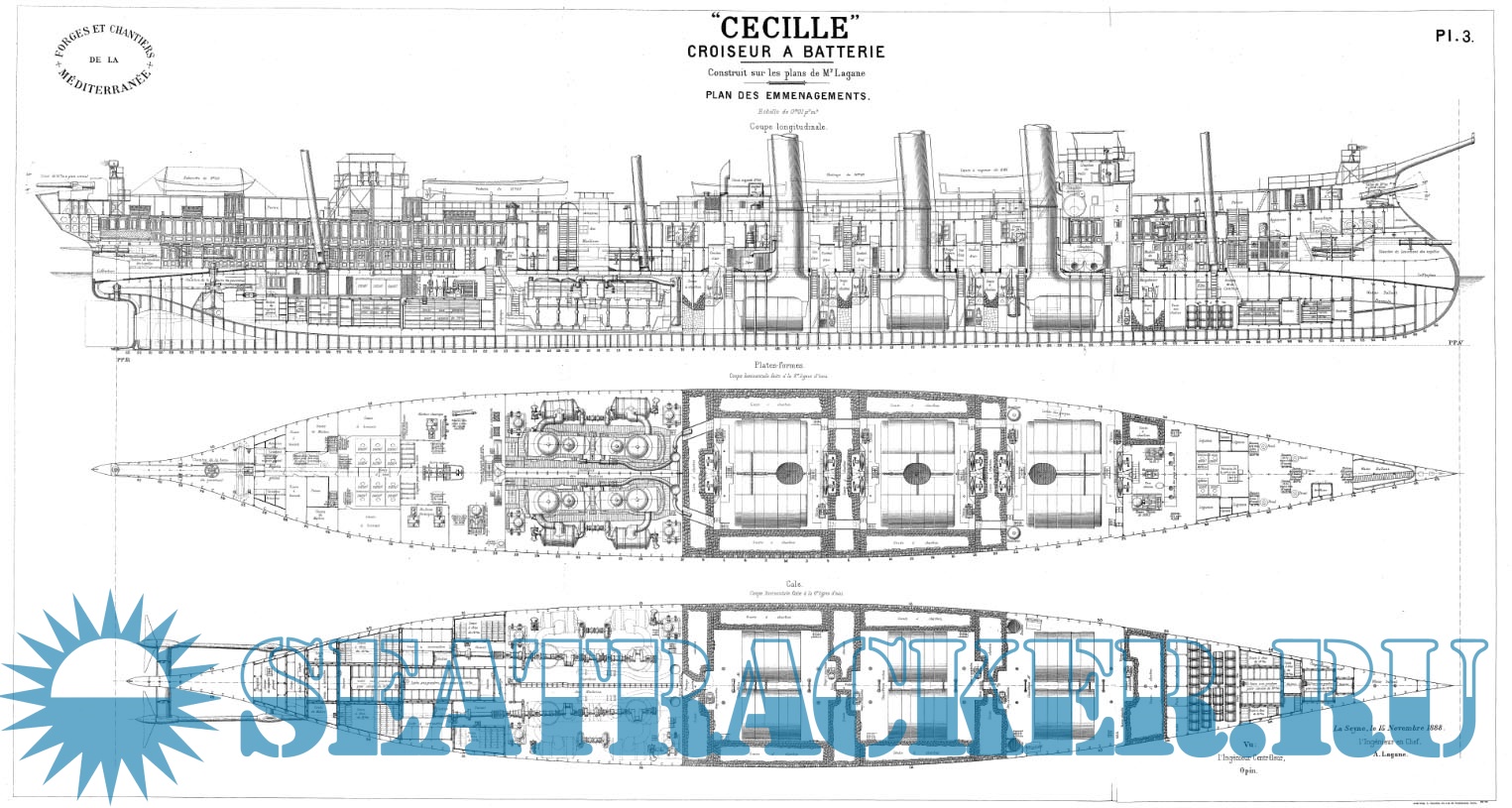Архивные чертежи французского крейсера AMIRAL CECILLE 1888 год