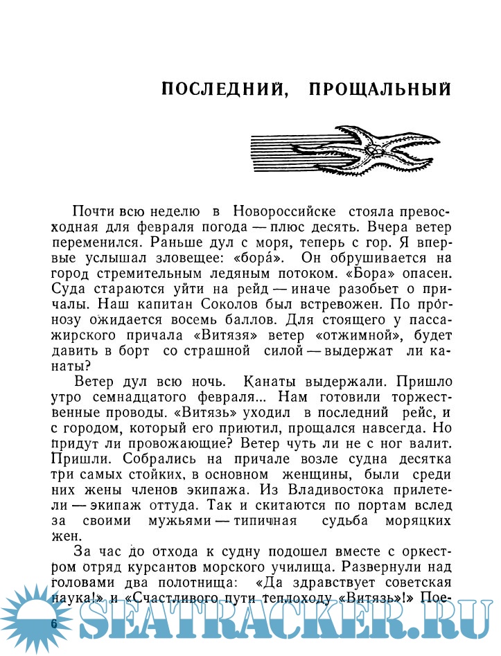 Описание: Автор этих очерков участвовал в научных экспедициях на борту ветерана советского океанологического флота «Витязя». Изучая природу, раскрывая ее сокровенные тайны корабль науки бороздил самые глухие уголки Мирового океана, подходил к берегам далеких островов, исследовал максимальные глубины, загадочный «Бермудский треугольник», шел навстречу тайфунам и штормам.