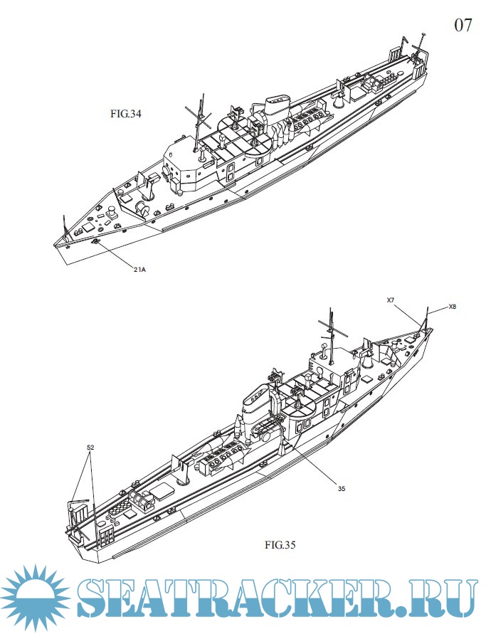 44 листа цветных выкроек и инструкций для изготовления бумажной модели тральщика класса T-371 в масштабе 1:250