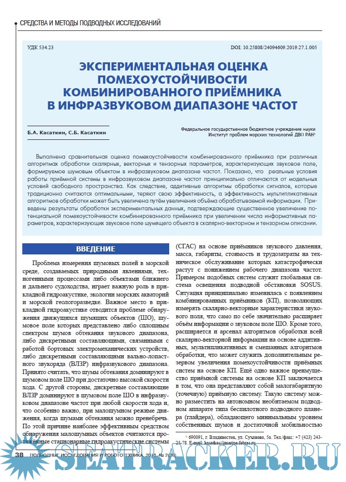 Описание: Научно-технический журнал «Подводные исследования и робототехника» посвящен проблемам исследования и освоения Мирового океана и относится к области знаний, лежащей на стыке наук:- теоретической и прикладной механики, навигации и управления движением, динамики управляемых систем и процессов,- робототехники, мехатроники, автоматизированного конструирования технических устройств, информатики и вычислительной техники,- теоретической и прикладной океанографии, физики океана, гидроакустики, морской геологии, экологии морских акваторий.Цель журнала – систематизировать и объективно отражать все наиболее значимые научно-технические и практические достижения и результаты исследований по освоению подводного пространства и морского дна, способствовать развитию новых идей, средств и методов подводных исследований и робототехники, консолидировать усилия научных и деловых кругов, потенциальных потребителей новейших достижений в сфере подводных технологий.Журнал «Подводные исследования и робототехника» публикует научно-технические статьи, проблемные, обзорные, дискуссионные материалы по всем направлениям, относящимся к методам и техническим средствам исследования и освоения океана, включая подводные аппараты и роботы, акустические, гидрологические, геофизические средства и методы исследования физических полей океана.Авторами публикаций журнала являются авторитетные ученые, ведущие специалисты и молодые исследователи из научных организаций и вузов Москвы и Подмосковья, Санкт-Петербурга, Зарубежья, Дальнего Востока, Урала, Сибири, и других регионов России. Для научного рецензирования и редактирования публикуемых статей привлекаются авторитетные специалисты в соответствующих областях знаний.Читательская аудитория - широкий круг ученых и специалистов, работающих в области исследования морских глубин, деловые круги и потенциальные потребители научно-технических разработок и инновационных проектов, молодые ученые, аспиранты и студенты, специализирующаяся в указанной области.