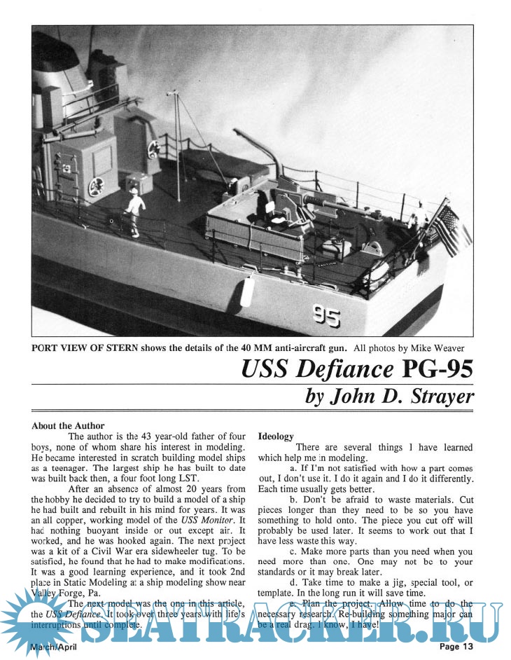 Year: 1991 Language: English Author: Scottie Dayton (Editor) Genre: Periodical (magazine) Edition: 1991-2 Format: PDF Quality: Scanned pages Pages count: 84 Description: Seaway is the home port for Seaways Ships in Scale magazine, the leading workshop and research magazine for the ship modeler. In the magazine we explore all levels of modeling experience, all types of ships, all kinds of models, all historical eras and all construction materials