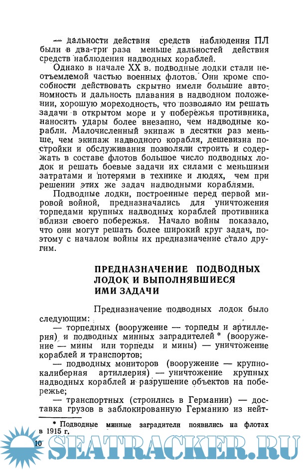 Описание: Предназначение зарубежных подводных лодок и выполнявшиеся ими задачи в войне на море, изменение их тактики в зависимости от развития тактико-технических элементов. Влияние их деятельности на развитие и тактику других родов сил флота. Строительство подводных лодок, тенденции развития.