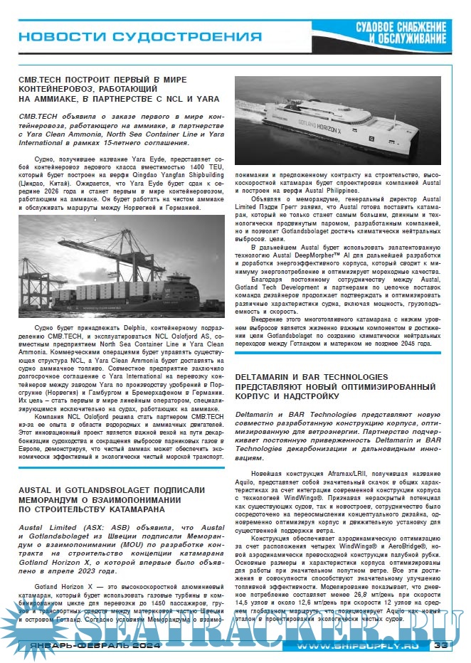 Год выпуска: 2024 Язык: Русский Автор: Батраков В.Ф. (главный редактор) Жанр: Периодическое издание (журнал) Издание: 2024-1 Формат: PDF Качество: Изначально компьютерное (eBook) Количество страниц: 57 Описание: ''Судовое снабжение и обслуживание'' - периодический информационный бюллетень, издается с 1999 года и в настоящее время по праву занимает одно из ведущих мест среди специализированных отраслевых печатных изданий.Бюллетень стал надежным маркетинговым инструментом для технического менеджмента судостроительных, судоремонтных и снабженческих компаний. Более 500 отечественных и зарубежных фирм рекламодателей успешно сотрудничают с журналом с целью расширения своего бизнеса.Бесспорным преимуществом является бесплатное распространение издания целевой адресной рассылкой: судостроительным и судоремонтным предприятиям; морским и речным портам; судовладельцам морского, речного, промыслового флота; производителям и поставщикам судового оборудования, снабжения и материалов; предприятиям обслуживания флота (всего более 9000 компаний РФ).В журнале представлен весь спектр судового оборудования, комплектующих, запчастей, снабжения и материалов (с указанием контактных данных фирм производителей и поставщиков).