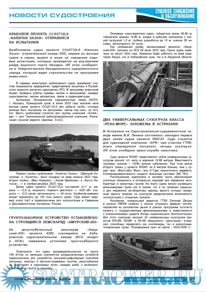 Описание: ''Судовое снабжение и обслуживание'' - периодический информационный бюллетень, издается с 1999 года и в настоящее время по праву занимает одно из ведущих мест среди специализированных отраслевых печатных изданий.Бюллетень стал надежным маркетинговым инструментом для технического менеджмента судостроительных, судоремонтных и снабженческих компаний. Более 500 отечественных и зарубежных фирм рекламодателей успешно сотрудничают с журналом с целью расширения своего бизнеса.Бесспорным преимуществом является бесплатное распространение издания целевой адресной рассылкой: судостроительным и судоремонтным предприятиям; морским и речным портам; судовладельцам морского, речного, промыслового флота; производителям и поставщикам судового оборудования, снабжения и материалов; предприятиям обслуживания флота (всего более 9000 компаний РФ).В журнале представлен весь спектр судового оборудования, комплектующих, запчастей, снабжения и материалов (с указанием контактных данных фирм производителей и поставщиков).