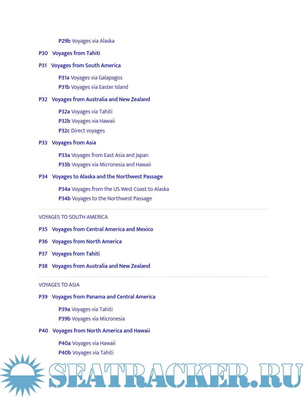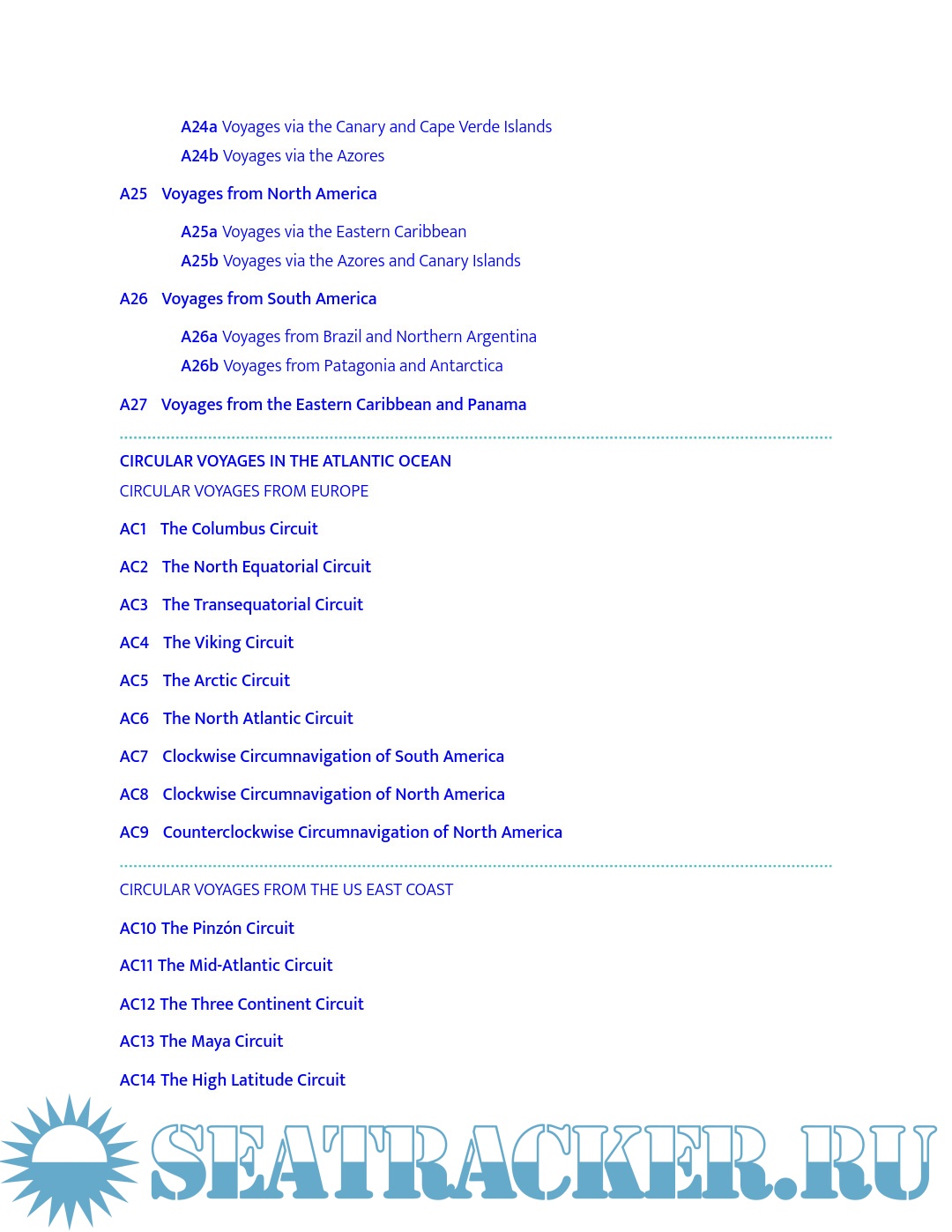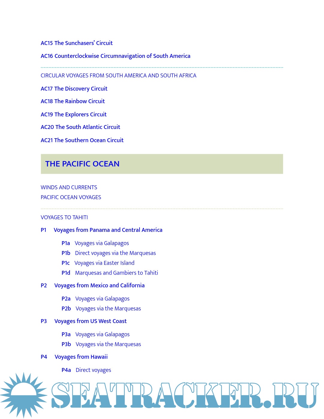- Strategies for sailing long or short circuits in the Atlantic, Pacific and Indian Oceans