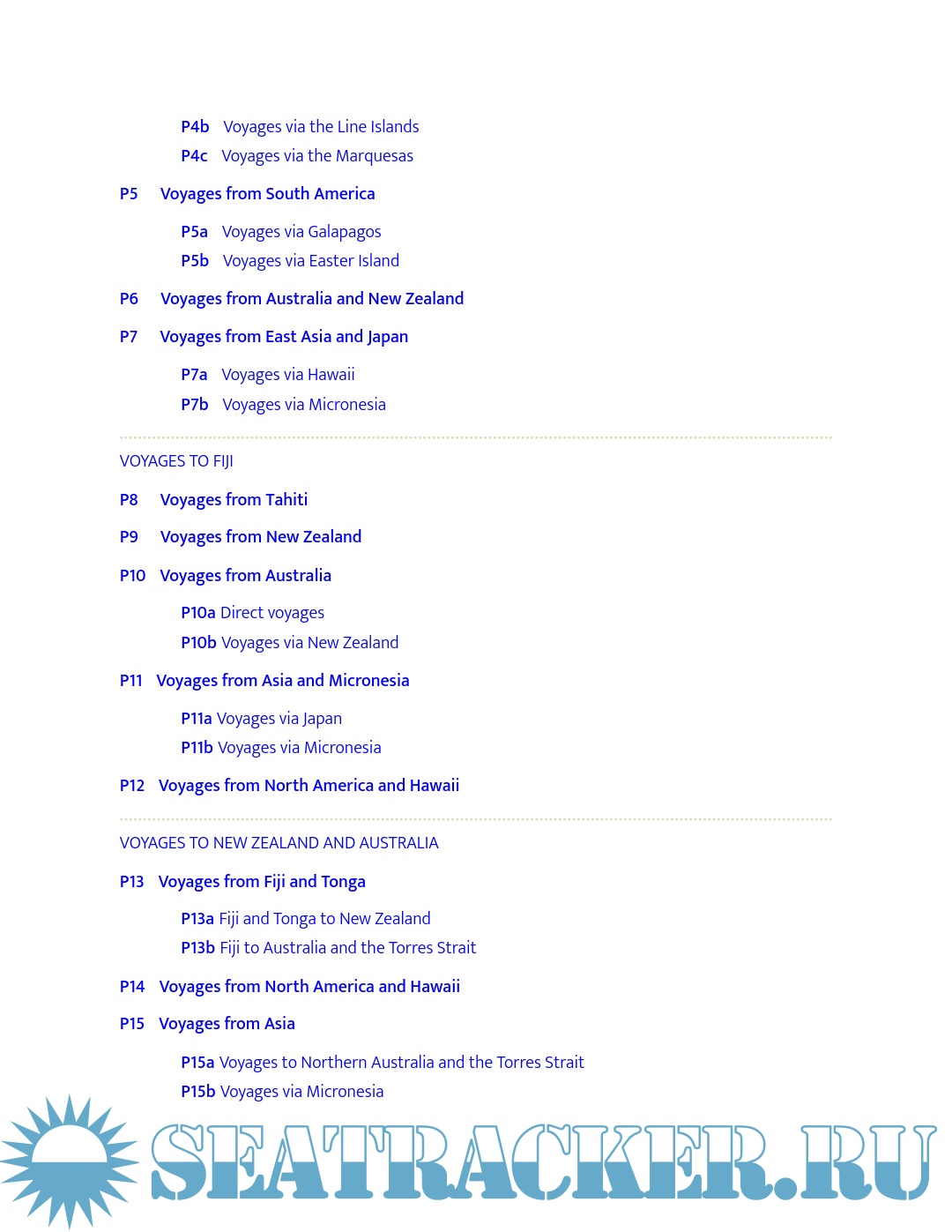 - Practicalities (repair facilities, common gear breakage on extended voyages, places to leave the boat to fly home if necessary, health considerations, provisioning for a long trip, personal safety measures, and much more)