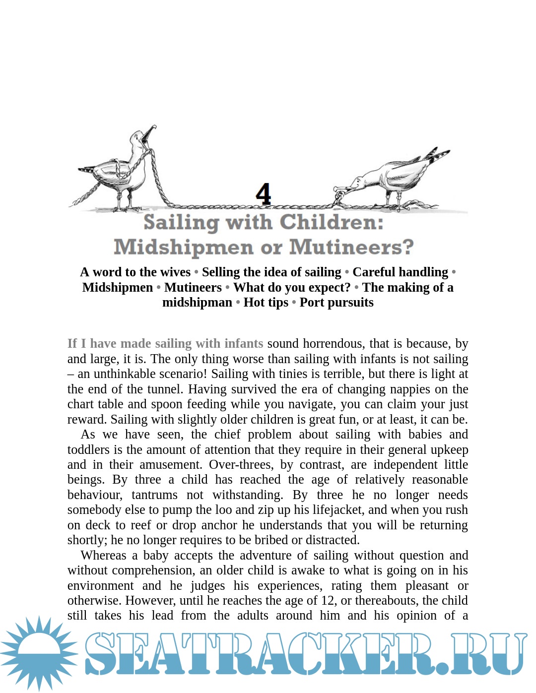 Year: 2013 Language: English Author: Schinas J. Genre: Manual Publisher: Adlard Coles Format: PDF/EPUB Quality: eBook Pages count: 267 Description: This book, based on 13 years of research and personal experience, is the bible of boating with babies and children. Immensely practical and highly entertaining, it contains a wealth of information on every aspect of the business, including: Introducing children to sailing, ideas to keep them from being bored on board, and tips for turning a mutineer into a midshipman Safety and suitability of different types of yacht; features to look for and those to avoid Dinghies suitable for use as both tender and sailing craft Personal safety and an in depth look at different types of children's lifejackets Ideas to help you cope with seasickness, or even avoid it altogether Absolutely everything you need to know about sailing or cruising with a baby Ocean cruising with kids, including home education.