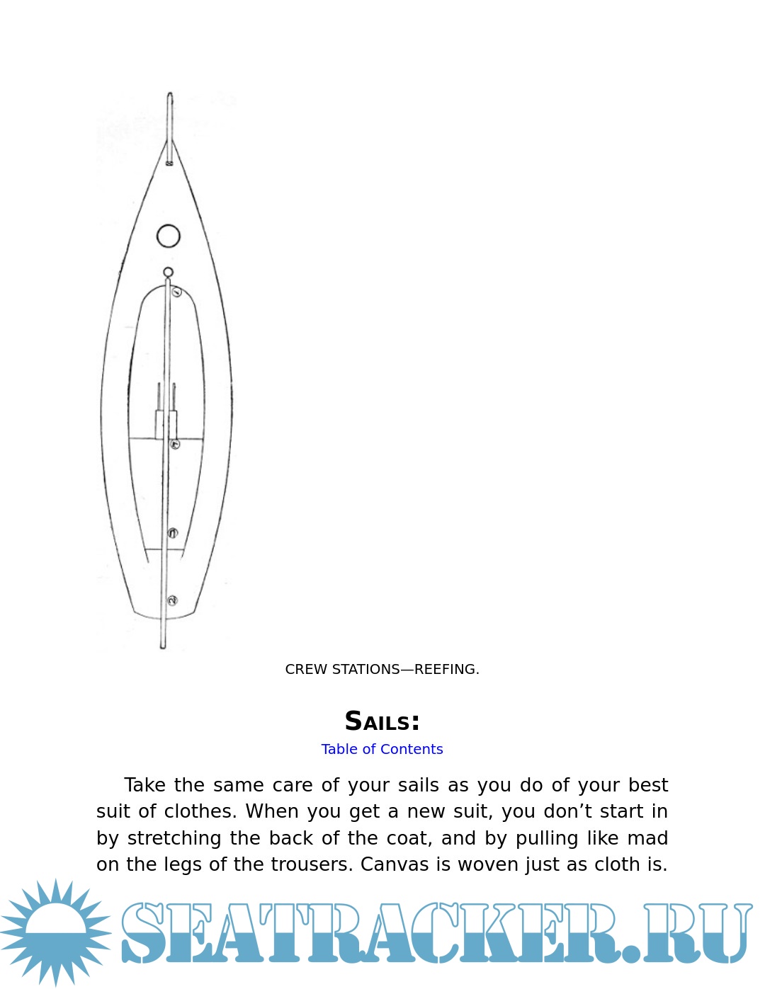 Description: In THIS book is the response to a constant appeal for information. During the last nine years I have received thousands of letters, asking for hints on all manner of subjects relating to the care, handling, buying and equipping of small yachts. The majority of these letters came from boys and young men living throughout the world, who were just entering the sport, and who were anxious to become skillful sailors and competent skippers. I can thoroughly understand their position, and sympathize with their desire for fuller and more practical knowledge than that contained in the majority of works upon yachting. What knowledge I possess of this art, or profession, I have gained by years of hard work and close observation, and having begun my studies when very young can testify to the dearth of literature of value to the green hand, who is looking for practical hints that will help him to become a skillful yacht sailor. Had I possessed a book like this, it would have saved me time, money and lots of hard work and anxiety. But, in using this book, it must be remembered that a hint is not a law or a command, it is simply a concise statement for you to take, think over, and make use of, if it appears to be logical and practical. There may be better and easier ways of doing many of these things I speak of—that is for you to find out. I am an authority only as far as my knowledge goes, and no further. The basis of my authority is my years of observation and experience; your right to confute my findings can only be based on similar premises. Unless you have tried and proved that my instructions are wrong, they are still good medicine. If a man, especially a young one, decide to go into yachting, he should also decide to learn the business of handling these craft from the keel up. It is not sufficient, as many of you think, that all that is necessary is to learn how to sail a boat about. You should know not only how to sail her, but you should know why she sails, and all about the gear and canvas used to propel her. You should learn to rig and unrig, to care for and to understand every part of her structure, both above and below decks. It is certainly a sorry spectacle to see a man sailing a yacht who cannot tie a proper knot, splice a rope, or bend a sail, and who does not know the terms used to designate parts of the structure which he essays to manage. If he is ashamed to learn, or if he is too lazy to gather such knowledge, he is out a place in a sport which is the life and joy of energetic, skillful and brave men. I hope all of my boys the world over who are coming into yachting, and to assist whom I have written these words, will never be ashamed to learn the sailor’s trade, or be too lazy to acquire all possible knowledge relating to the art of handling vessels. You will never regret having given your time to the study. It will bring to you that which is more valuable than the treasures of the earth; something that you can never be deprived of, no matter how unlucky or how unfortunate you may be—the respect paid to the skillful by the unskillful; the deference shown to the educated by the ignorant. It is as well to say here that these hints are not intended for men owning and sailing large yachts. Such vessels are too costly to be trusted in the hands of any men except those who are thoroughly competent; and if an owner has not sufficient skill to handle a large yacht it is his business to hire somebody who has. These hints are intended for the small-boat owner and skipper.