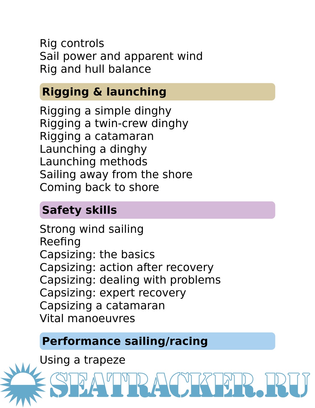 Launching, helming, trapezing and capsizing