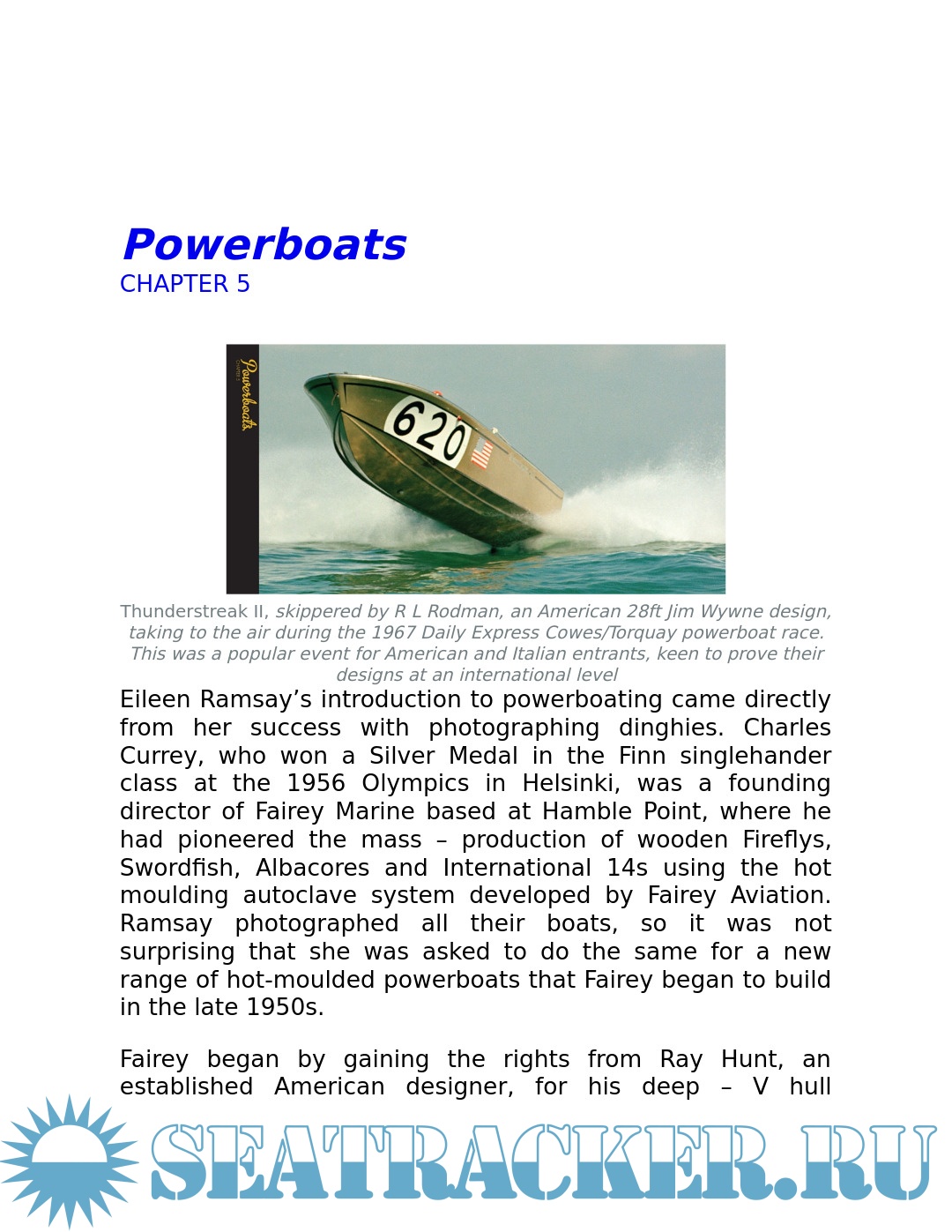 Year: 2012 Language: English Author: Pickthall B. Genre: History Publisher: Bloomsbury Publishing Plc Format: PDF/EPUB Quality: eBook Pages count: 166 Description: Eileen Ramsay was at the centre of a unique period in yachting history, and this wonderful book, featuring her classic photography, celebrates an extraordinary woman and her extraordinary subjects.Eileen's heyday was between 1957 and 1970 - a time when eccentrics ruled, records were there for the setting, and women weren't often to be found behind the lens. But Eileen established herself as one of the greatest yachting photographers of her time, taking famous portraits of such sailing icons as Sir Francis Chichester, Eric Tabarly, Olympians including Rodney Pattisson and Keith Musto, and historic pictures from the first OSTAR (Observer Single-handed Trans-Atlantic Race). She was the only photographer Chichester allowed on his Gypsy Moth yachts, and managed to photograph the notorious charmers Uffa Fox and Max Aitken.Her unique archive records the explosive growth in dinghy and offshore sailing during the post-war years, and includes pictures of the first Enterprises, Mirrors, Ospreys, Optimists and the first America's Cup 12 metres Sceptre and Evaine. This beautiful book will feature: - the post-war explosion in dinghy sailing - the growth of offshore racing - the pioneering days of the OSTAR race and solo circumnavigations - the 12 metre class and the America's Cup - post-war powerboat racingThere are also wonderful personal tributes to Eileen throughout by sailing personalities such as Vernon Stratton, Keith Musto and Uffa Fox.