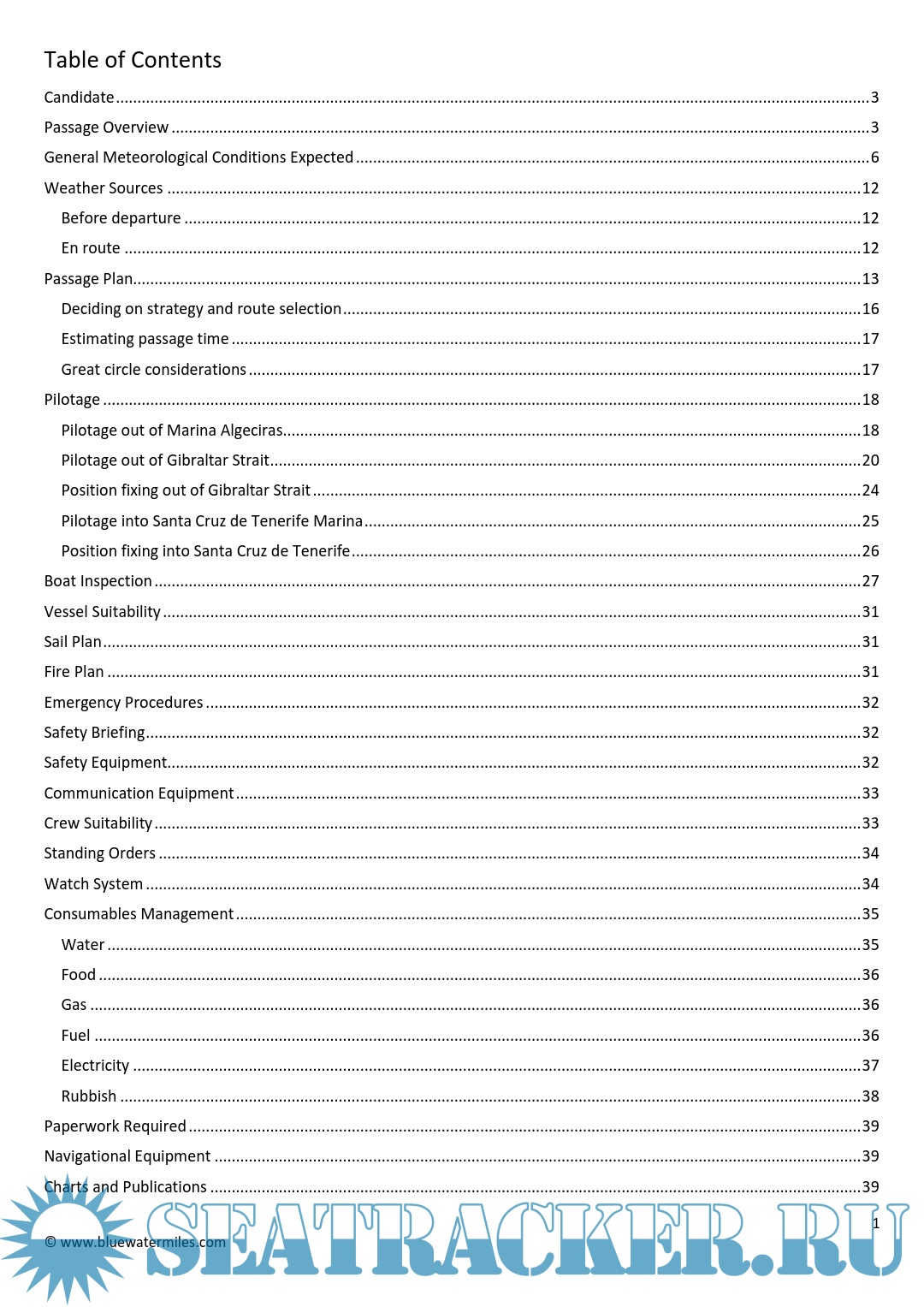 Description: Narrative Account of the Planning and Execution of the Qualifying Ocean Passage