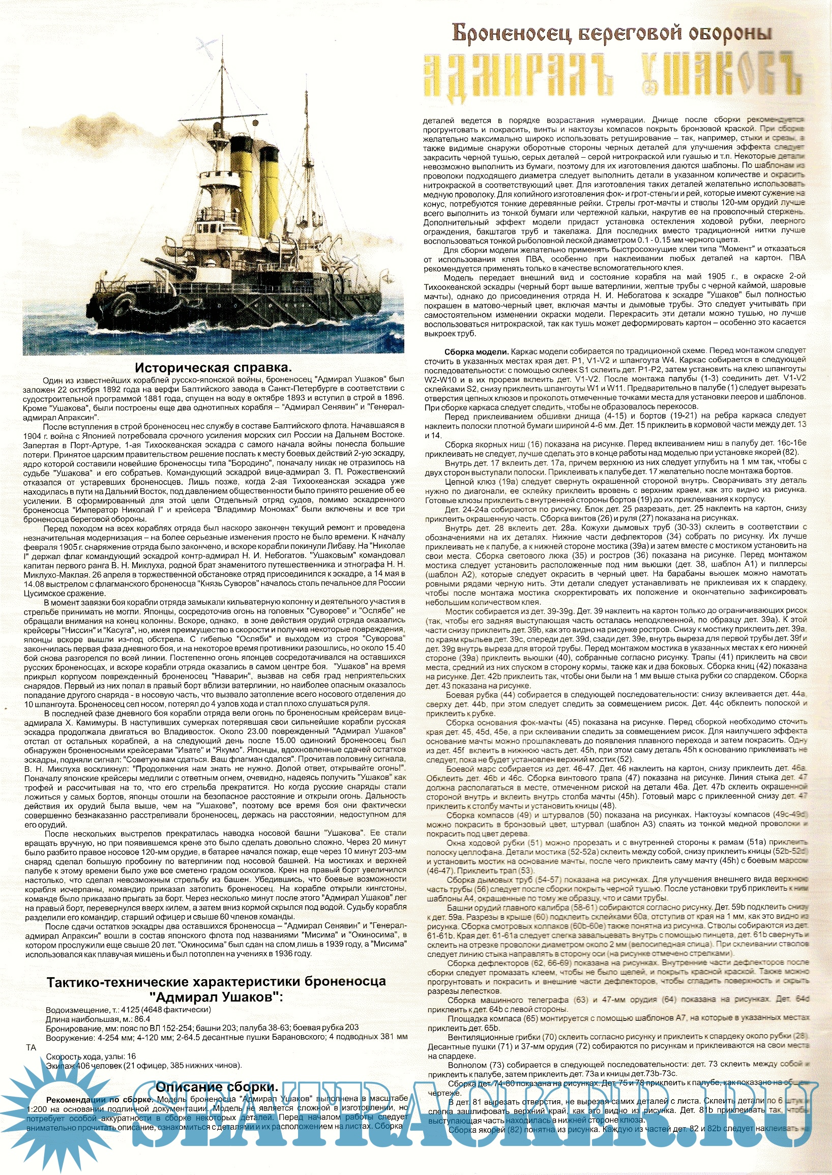 15 листов цветных выкроек и инструкций для изготовления бумажной модели броненосца береговой обороны ''Ушаков'' 1905 год (Россия) в масштабе 1:200Скриншоты