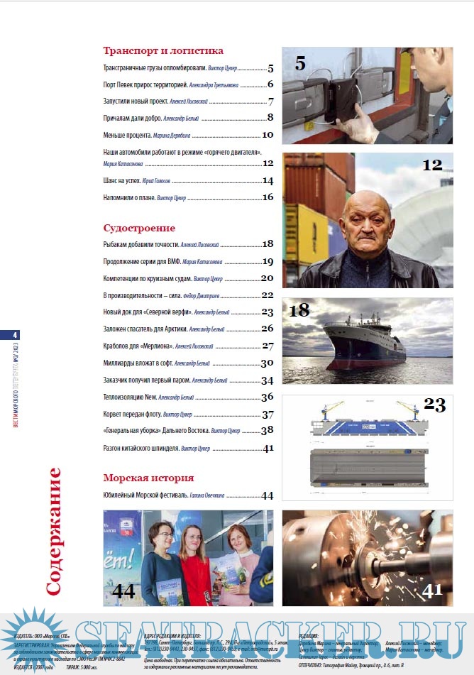 Описание: «Вести морского Петербурга» - Информационно-аналитический журнал отражает все тенденции развития морской составляющей экономики Санкт-Петербурга, а также транспортного комплекса России и европейских государств. Рубрики журнала: Морская столица, Порты и терминалы, Отраслевое законодательство, Судостроение, Морской и речной транспорт, Транспорт и логистика, Новые технологии, Таможня, Наука и образование, Морская история, Морское страхование.