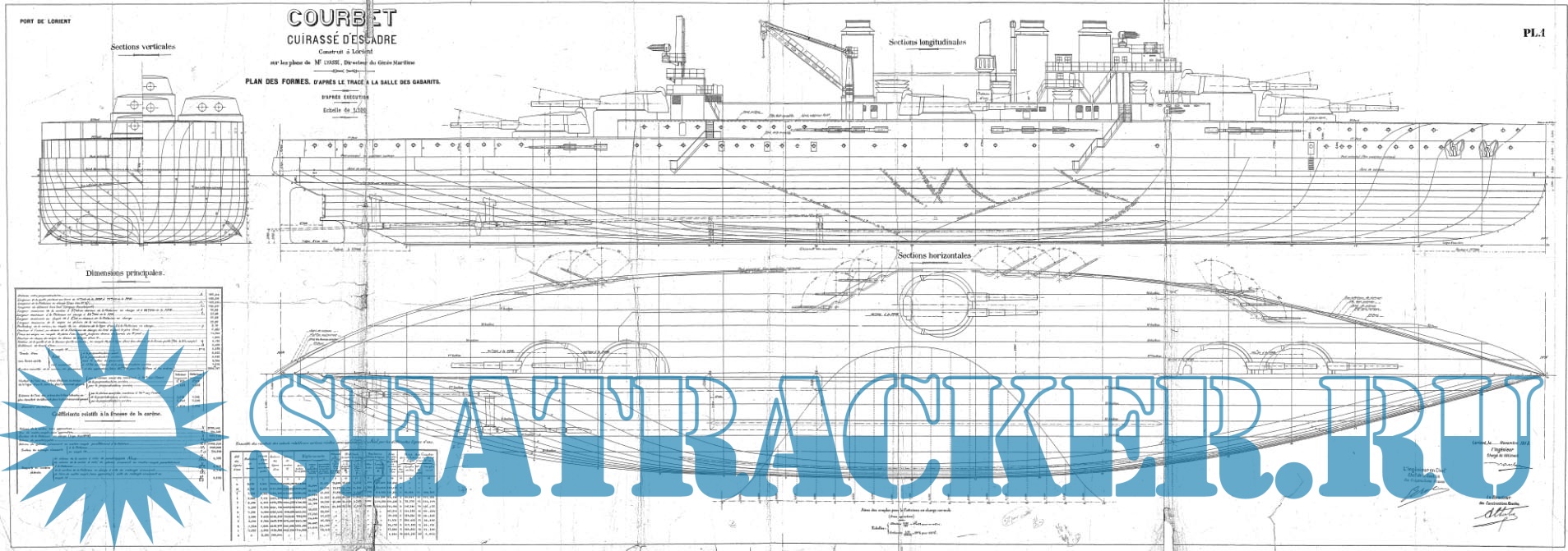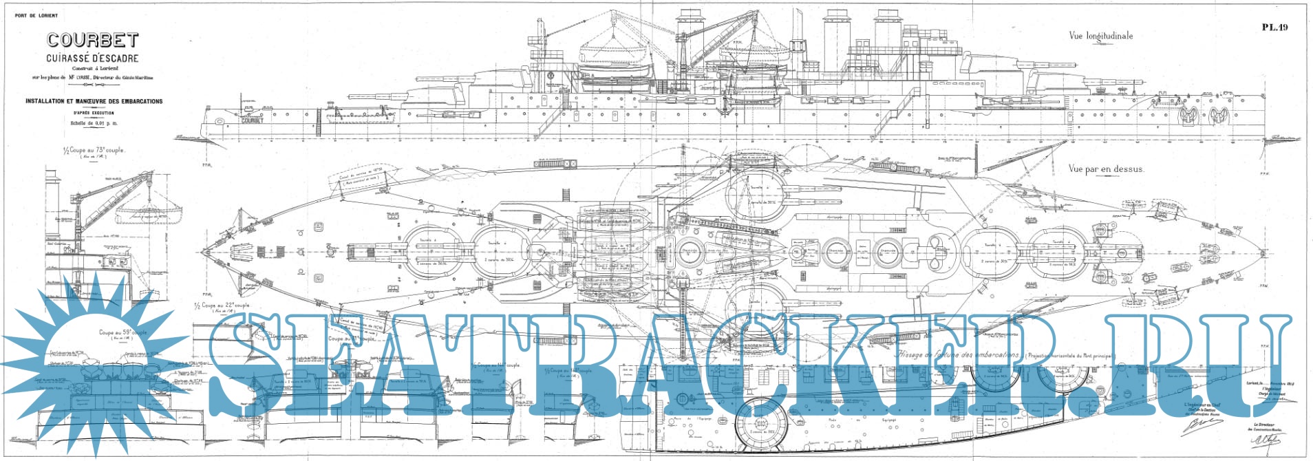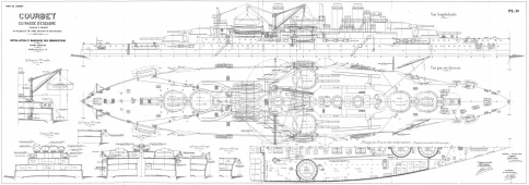 Описание: 33 листа архивных чертежей французского крейсера COURBET 1911 год