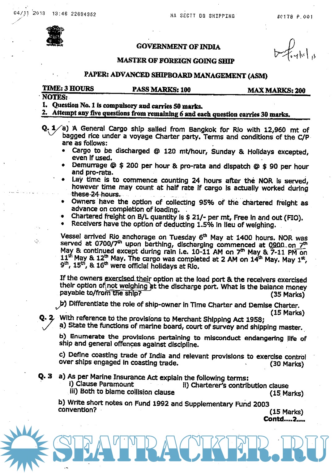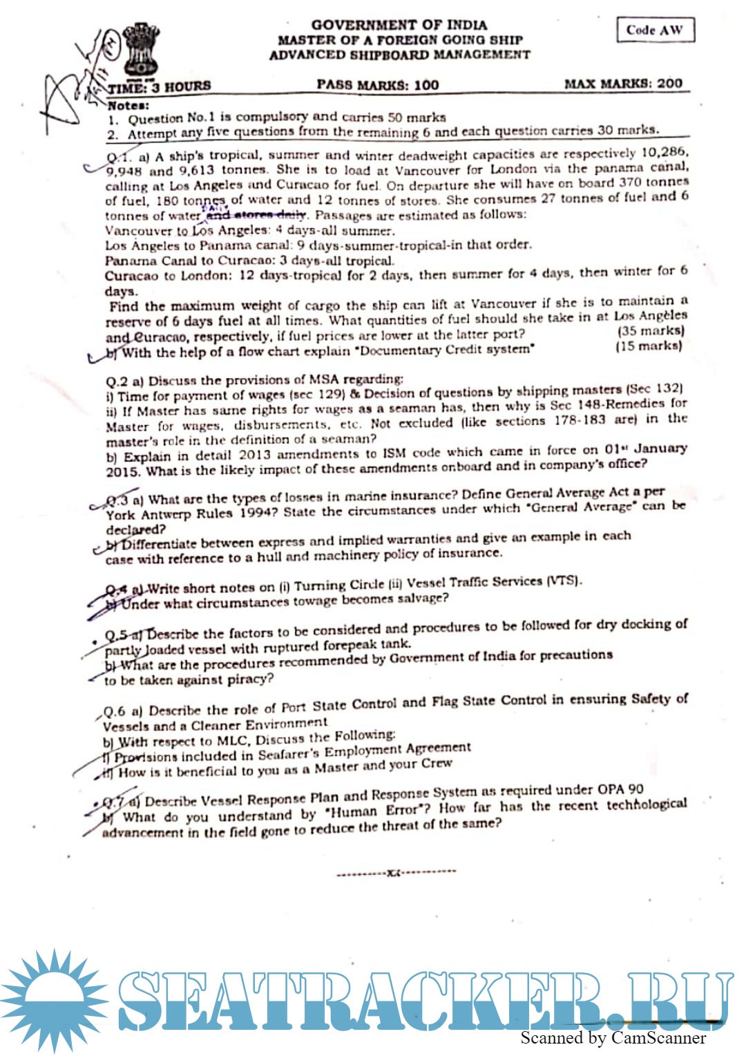 Description: Paper: ASM - Advanced Shipboard ManagementMaster's examinations