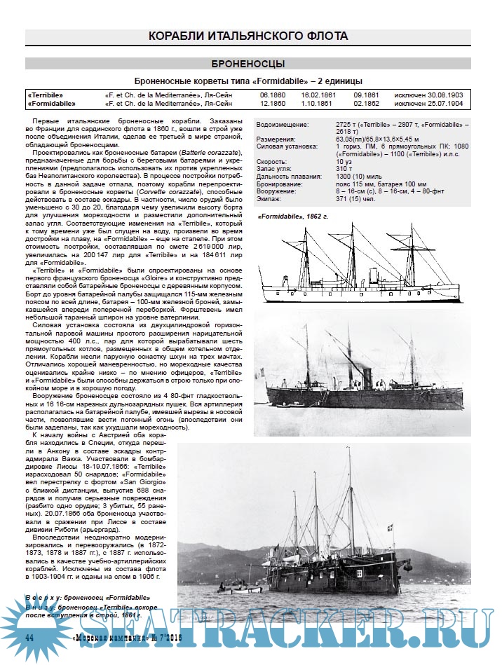 Год выпуска: 2016 Язык: Русский Автор: М.В. Ферапонтов, С.В. Патянин Жанр: Периодическое издание (журнал) Издание: 2016-07 Формат: PDF Качество: Изначально компьютерное (eBook) Количество страниц: 68 Описание: Данный тематический выпуск «Морской кампании» посвящен 150-летнему юбилею сражения при Лиссе, состоявшегося 20 июля 1866 г. Оно не только вошло в историю как первое крупное сражение броненосных флотов (не отдельных броненосцев, а именно флотов!) и вывело Австрию в число ведущих морских держав, но и оказало основополагающее влияние на развитие военного кораблестроения и тактики на последующие полстолетия. Сборник включает в себя характеристику военно-морских сил Италии и Австрии, описание хода военных действий на Адриатическом море в кампанию 1866 г. и собственно сражения при Лиссе, а также справочники по корабельному составу австрийского и итальянского флотов