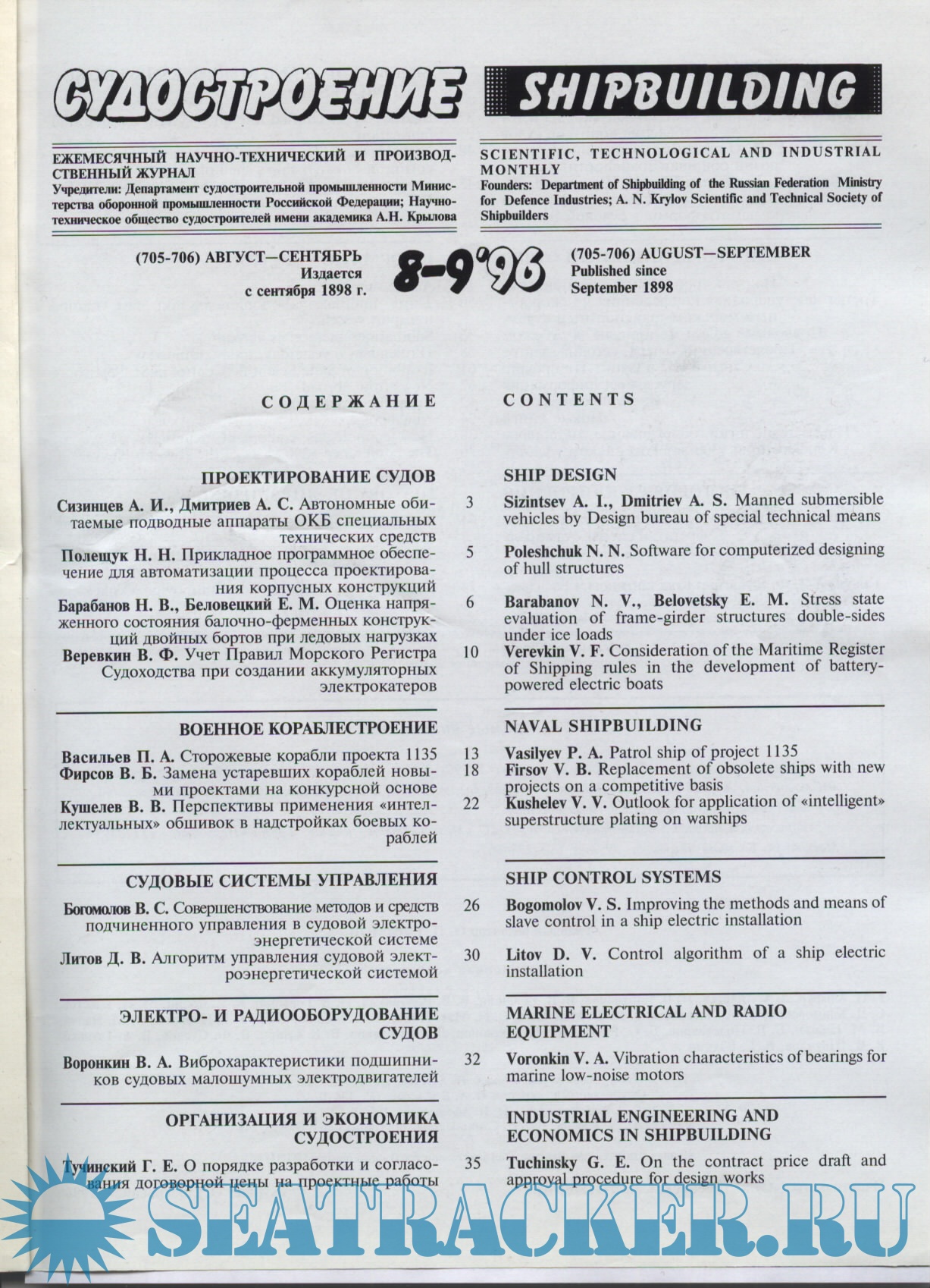Журнал «Судостроение» 1993 08-09 - группа авторов [1993, PDF]