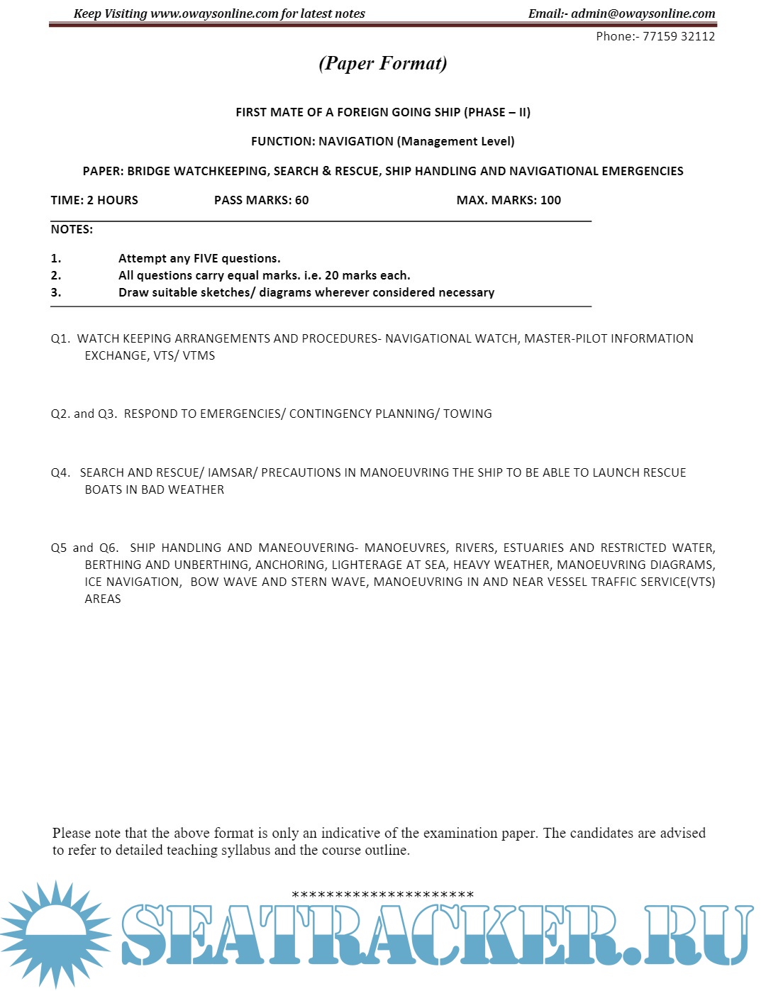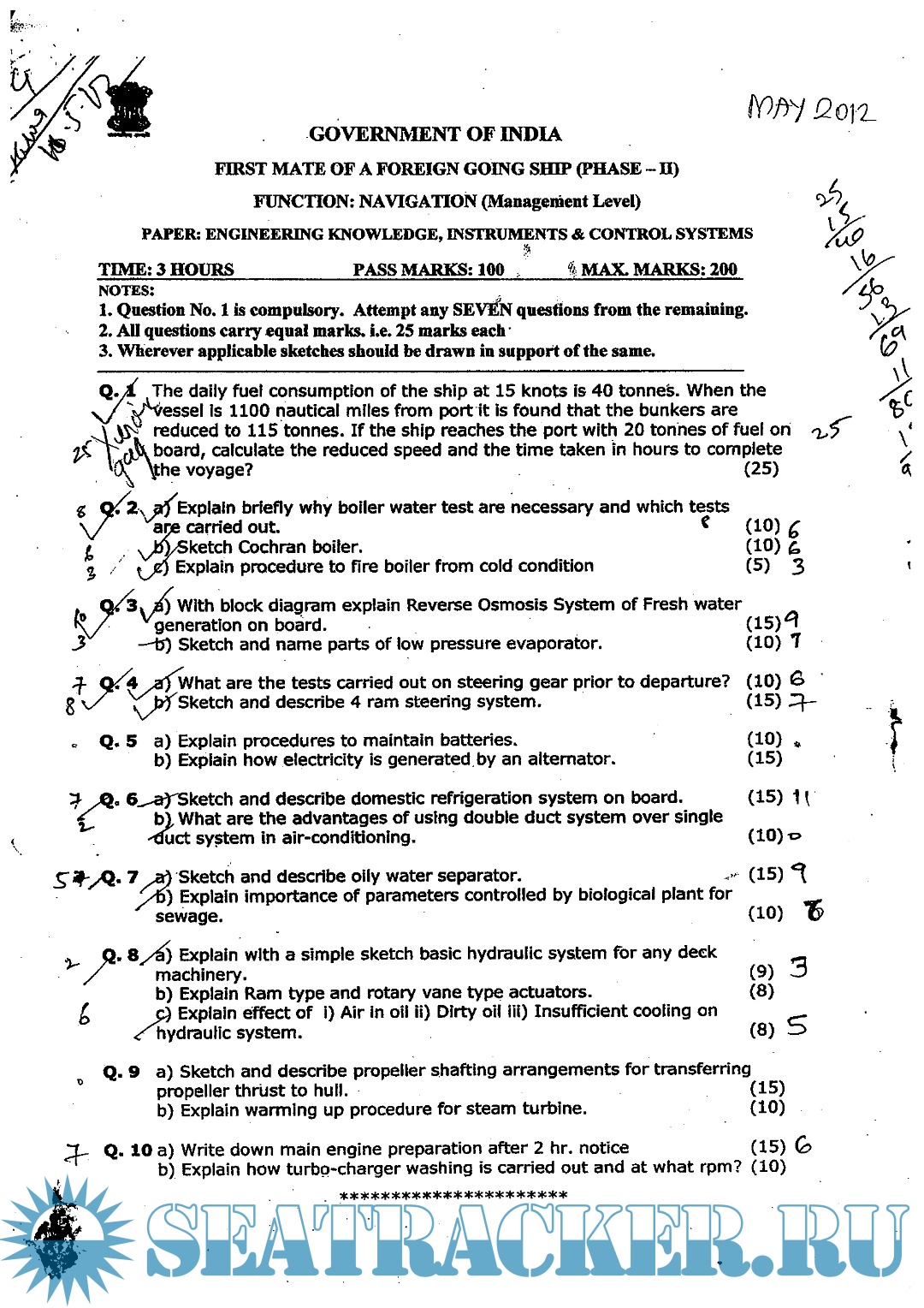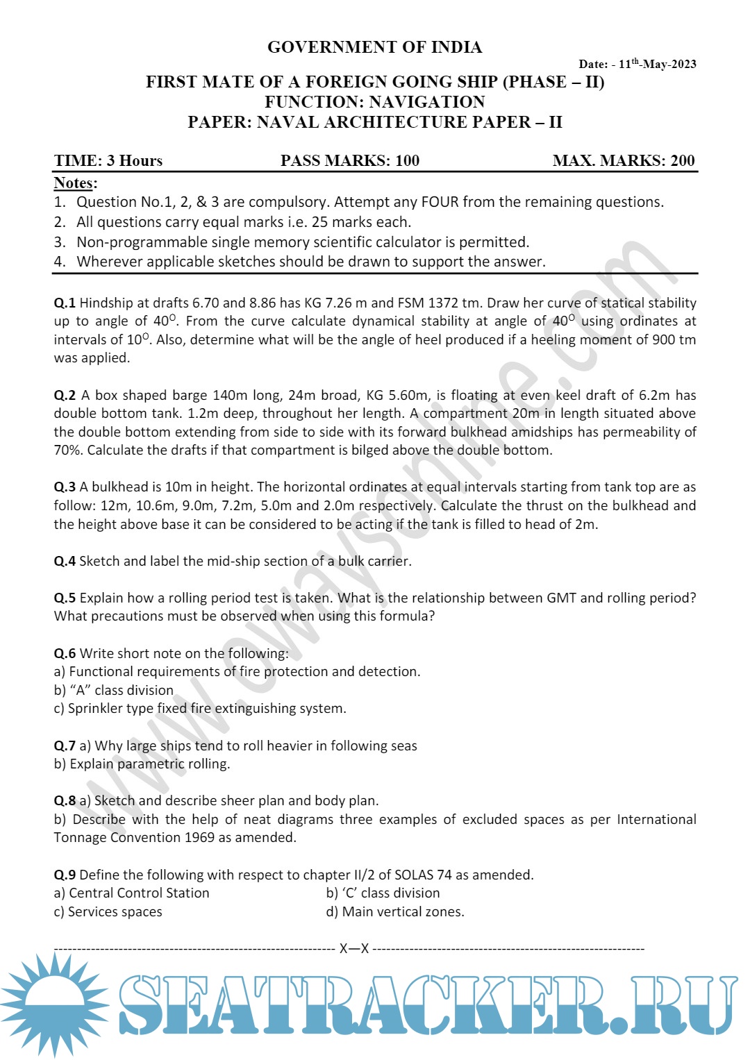 Description: Question paper set for Mercantile Marine Department (MMD), India Exams for Phase II - Chief Mate (F.G.).