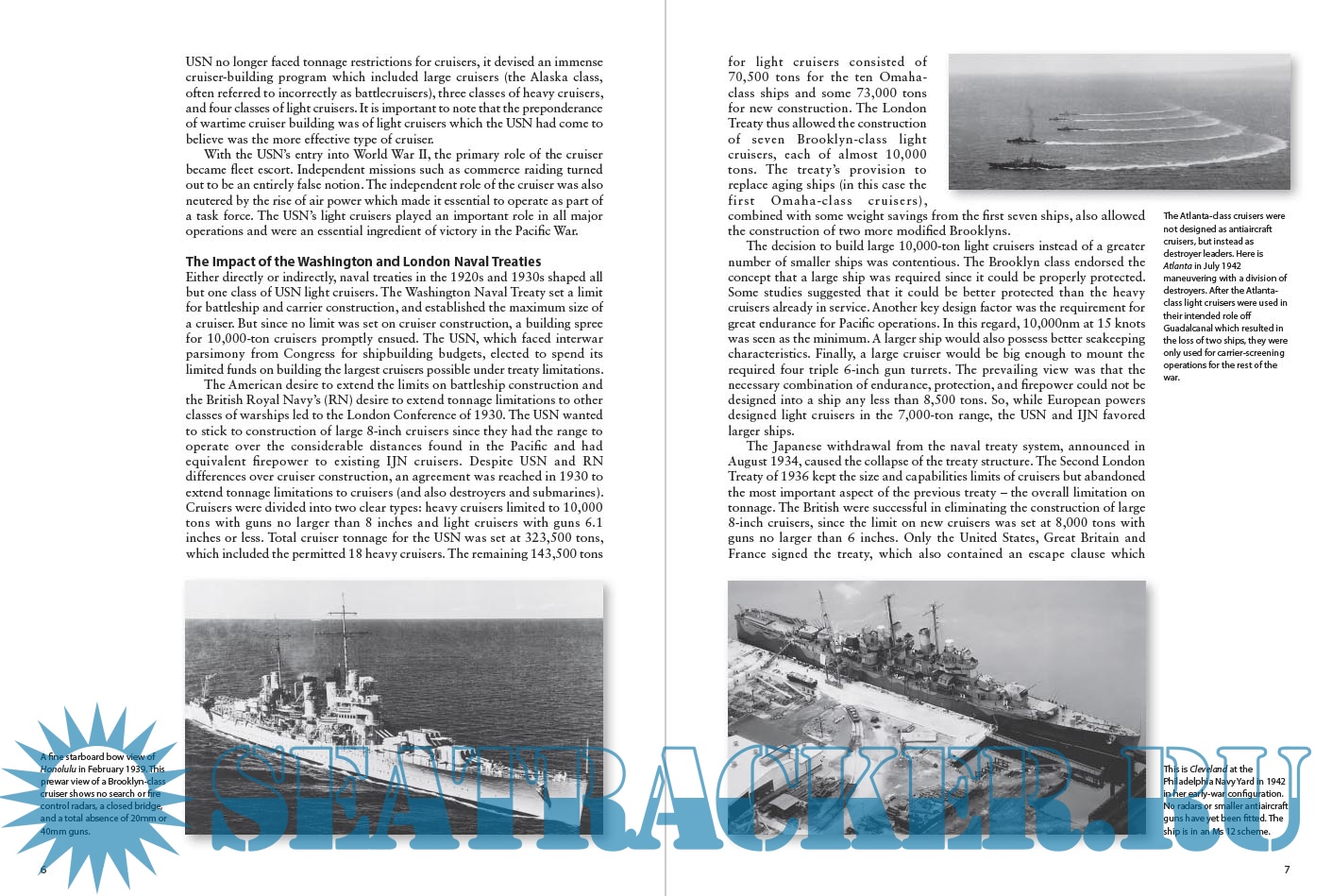 This book examines every US light cruiser produced, including those of the Fargo and Worcester classes--which were actually completed after World War II had ended--tracing their design, development, and evolution throughout the war and beyond.