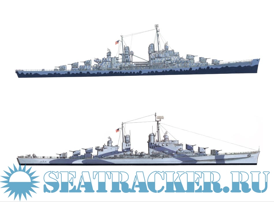 Description: During World War II, the United States built 72 light cruisers of various classes. In response to the severe air threat that surface ships faced, new cruisers were designed with increasingly heavy antiaircraft weaponry as well as the traditional six-inch guns. With the speed and range to keep up with aircraft carriers, and their considerable antiaircraft capability, they were a mainstay of the carrier escorts.