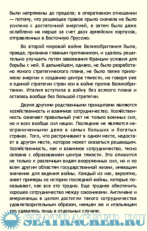 Оглавление Предисловие к русскому изданию Предисловие Введение Глава 1-я: Основы Понятия Принципы ведения войны Суша как театр воины Море как театр войны Господство на море, морское могущества, морской престиж Воздух как театр войны Прибрежная полоса Интегральная стратегия взаимосвязанных видов вооруженных сил Оружие морской войны Глава 2-я: Предыстория Германское военно-морское руководство в первой мировой воине Германский военно-морской флот между войнами Лондонское морское соглашение План «Z» Глава 3-я: Исходная позиция Положение осенью Морские интересы участников воины Военные планы и положение Германии Морская авиация Оперативные планы Строительство подводных лодок Положение и намерения Британии Немецкое руководство Военно-морской флот и его организация Организация верховного руководства у англичан Глава 4-я: Первые операции Затрудненное начало Международное право и ведение войны на море Ведение воины на море всеми видами оружия Начало блокады Ведение морской войны англичанами Глава 5-я: Норвегия Предыстория Оперативный план Британские мины немецкая атака Оккупация Торпеды не срабатывают Борьба за Нарвик Результаты Глава 6-я: Преувеличенный успех на суше Поход во Францию Возможности летом 1940 г. Британские меры против французского флота Операция «Морской лев» Глава 7-я: Война на море в 1940 г. У берегов Действия надводного флота против британского судоходства Подводная война до октября 1940 г. Германские военно-воздушные силы Англичане и американцы Глава 8-я: Средиземное море Италия Англия остается в Средиземном море Военные действия на Средиземном море с июня по октябрь 1940 г. Упущенные возможности Поход в Грецию и его последствия Контрудар и контрмеры Налеты на Геную и Ливорно Глава 9-я: Борьба против судоходства: осень 1940 г. - весна 1941 г. Подводные лодки Действия надводных кораблей Рейд «Бисмарка» Радиодальномер и радар Вспомогательные крейсера и прерыватели блокады Глава 10-я: Россия или Средиземное море? Средиземное море - центр тяжести против воли Клещи Балканы - Северная Африка не смыкаются Эвакуация Греции Завоевание Крита Поход в Россию - оперативные соображения и план Наступление Арктика Черное море Глава 11-я: Первые последствия континентального решения Контрудар в Средиземном море Подводная война с мая по ноябрь 1941 г. Затруднения в подводной воине Господство на закрытых морях Глава 12-я: Война превращается в мировую Рузвельт вмешивается в войну Вступление в войну Японии Нападение и наступление Подвоз по морю определяет исход войны в Северной Африке Мальта Удар рапирой средней силы Глава 13-я: В прибрежной полосе Силы охранения на Западе Немецкий торговый флот Торпедные катера, миноносцы и эсминцы Прорыв линкоров через Ла-Манш Британские налеты и набеги Театры войны с Россией. Полярные моря в 1942 г. Смена верховного командования военно-морским флотом Действия надводных кораблей в Северном море в 1943-1944 гг. Метеорологическая служба в Арктике Балтийское море до немецкого отступления Черное море в 1942-1944 гг. Мины на Дунае и Рейне Глава 14-я: Перелом в ходе войны Подводная война на Востоке и Западе Новые виды оружия подводной войны Новые пути в строительстве подводных лодок Трудные операции Наступление и контрнаступление на Тихом океане Решающее сражение у о. Мидуэй Алеутские острова Гуадалканал Глава 15-я: 