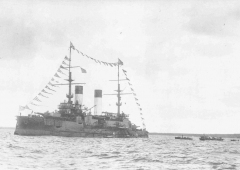 Описание: В Цусимском бою 14 марта 1905 г. броненосцы типа "Бородино" подверглись самому жестокому из возможных в то время испытаний - на полное уничтожение всей мощью сосредоточенного артиллерийского огня, которой располагал японский флот, в условиях, лишающих корабли возможности активно противодействовать этому уничтожению.