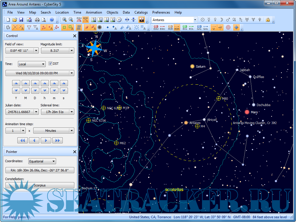Description: CyberSky is an accurate, yet easy-to-use planetarium program that provides an excellent way to learn about astronomy and explore the sky visible in the distant past, the present, and the far-off future. CyberSky can display and print attractive, highly-customizable maps of the sky as seen from your home, your favorite vacation spot, or any other location on the Earth. The program’s clean, user-friendly interface makes it easy to identify the objects you see in the sky and find the objects you want to see.