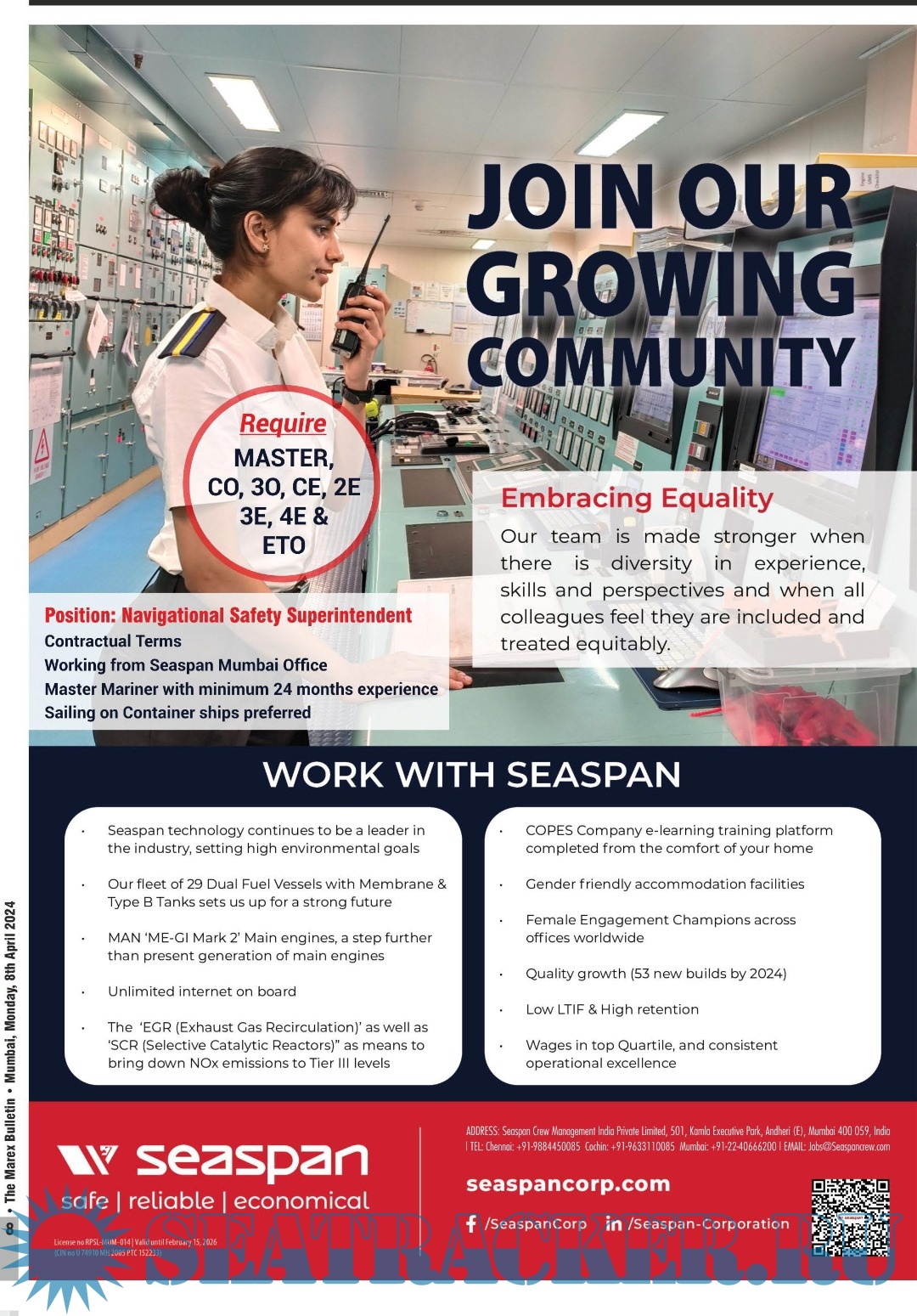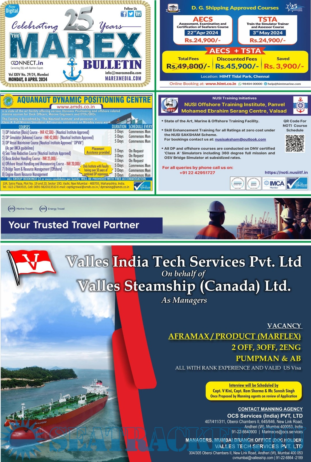 Description: The No 1 Twice weekly employment magazine for Seafarers.The Leading magazine for seafarers to locate Ship-board Employment opportunities, Training Institutes, Shipping companies.Online version: https://issuu.com/marexmediapvtltd Contents