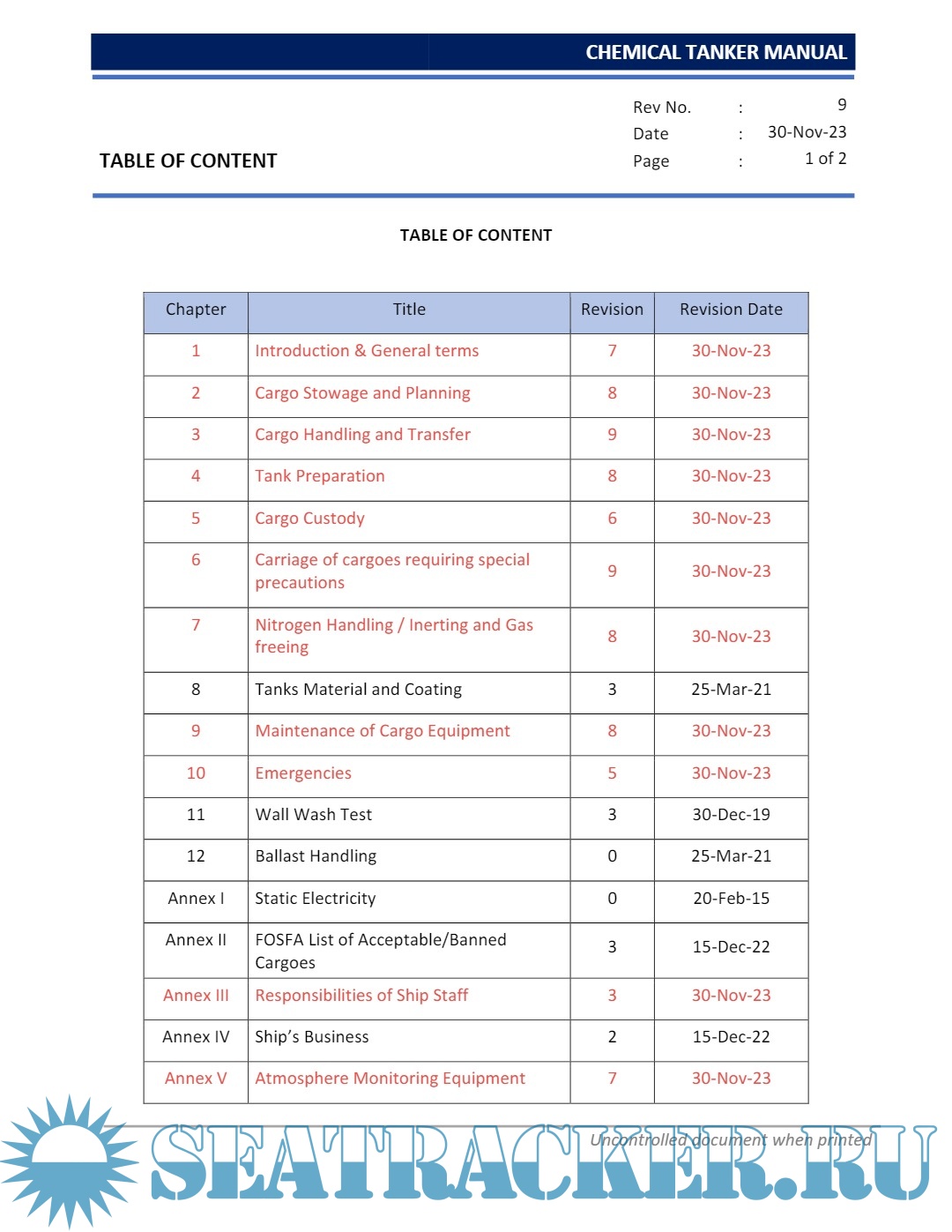 Description: This Manual is issued to assist all personnel involved in the operation of Chemical Tankers which are complex vessels designed to transport a wide range of cargoesand a large number of segregated products simultaneously.