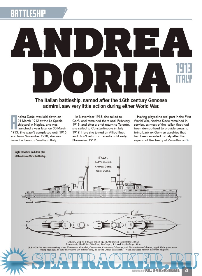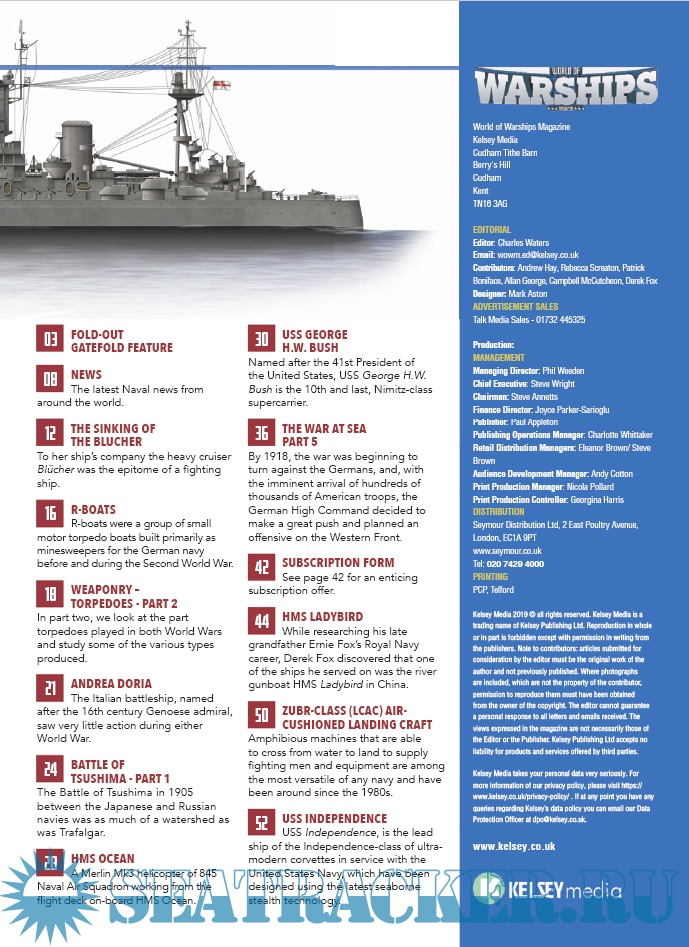 Year: 2019 Language: English Author: Charles Waters (Edtor) Format: PDF Quality: eBook Pages count: 56 Description: This 56-page magazine will cover such battles and battleships starting with the steel-clad warships of the 1900s, up to the modern day rulers of the seas – the highly sophisticated aircraft carriers and submarines of today.We will have a Naval news section from around the world, features on famous people, conflict at sea, fascinating historical accounts and exciting places of interest that you can visit today. World of Warships will also feature some excellent naval paintings from the brushes and easels of leading Naval artists, plus superb, highly detailed, fold-out, triple gatefolds, featuring profile artworks in every issue, created by Andrew Hay.The main thrust will of course be warships, encompassing destroyers, dreadnoughts, frigates, carriers, submarines et al, and their place in global naval history.