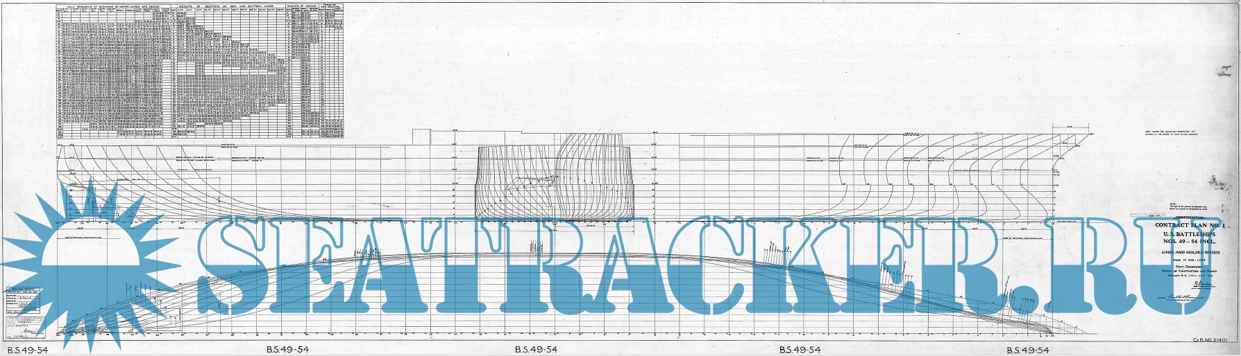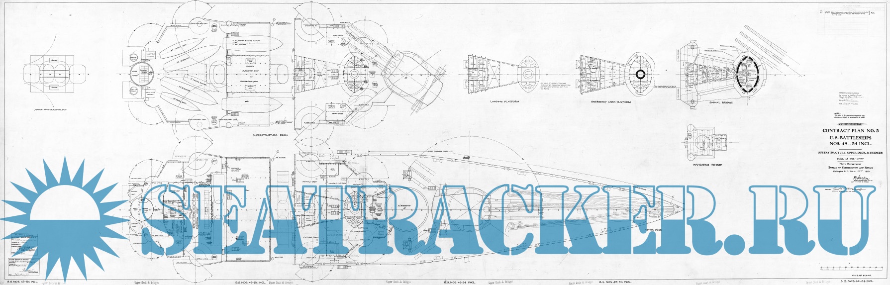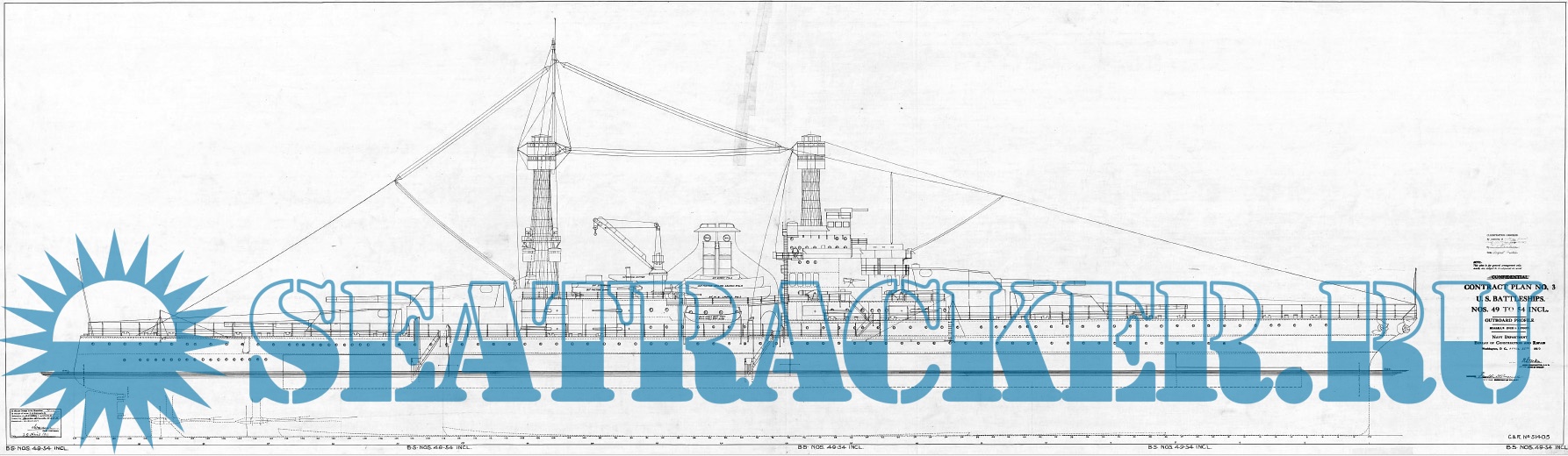 Архивные чертежи линкора США BB-49 South Dakota 1919 год