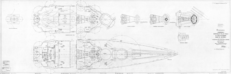 Описание: 7 листов архивных чертежей линкора США BB-49 South Dakota 1919 год