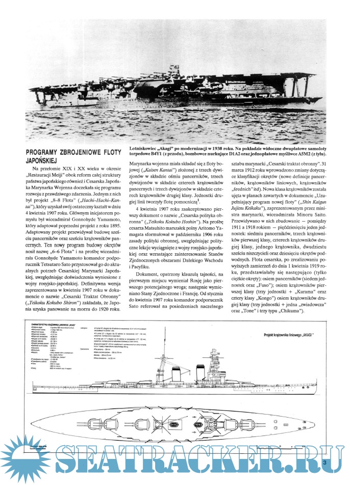 Description: Akagi - japoński lotniskowiec z okresu II wojny światowej. Zatopiony 5 czerwca 1942 w bitwie o Midway. Publikacja zawiera opis techniczny okrętu oraz jego kalendarium do wybuchu wojny. Całość uzupełniają wkładki z planami, schematami i rysunkami.