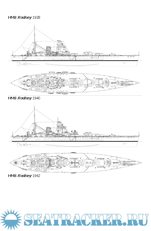 The two ships covered in this volume were the only capital ships designed and built between the wars—a special concession of the Washington Treaty’s ban on new battleships—and they were unlike anything before them, with the superstructure three-quarters aft and all main armament turrets forward of the bridge. During the war, Nelson survived mine and torpedo damage, while Rodney played a major part in the destruction of the Bismarck, both surviving to be broken up post-war.