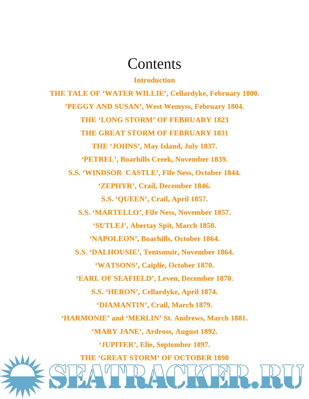 Inevitably, there were many ships wrecked and many lives lost during storms all around the coast of Britain during the nineteenth century, and Fife was no exception. This book contains the tales of just a few of the wrecks that occurred around Fife’s shores during the 1800’s, when lives were lost in tragic and horrific circumstances; depriving many homes of their sole breadwinner and leaving many grieving widows and fatherless children behind.