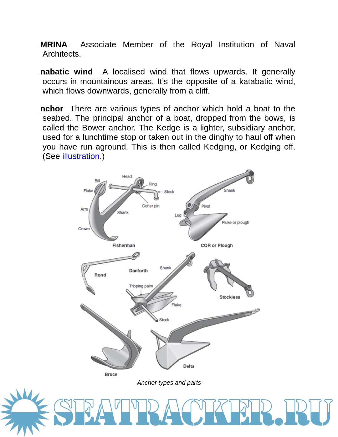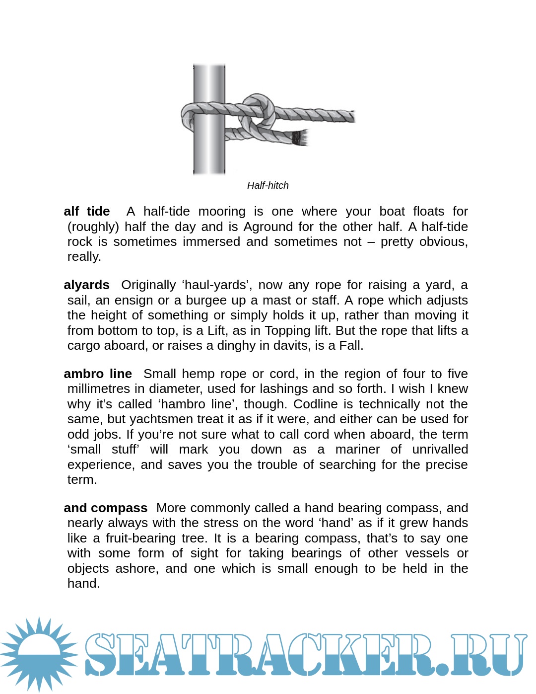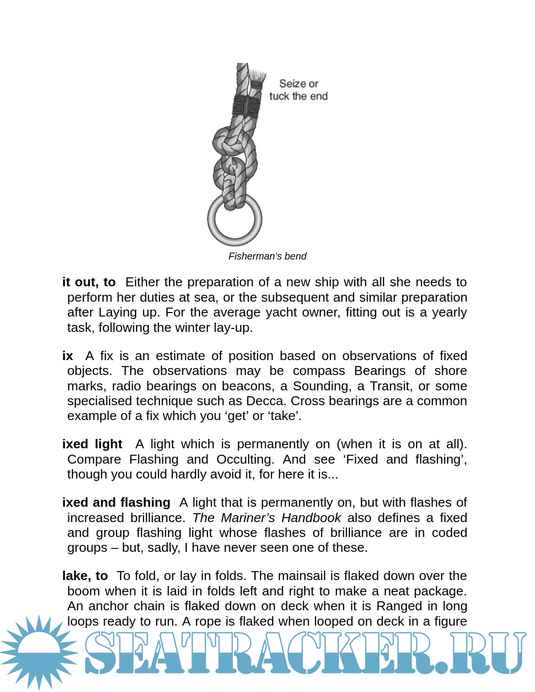 Year: 2012 Language: English Author: Desoutter D. Genre: Dictionary Publisher: Bloomsbury Publishing Plc Format: PDF/EPUB Quality: eBook Pages count: 278 Description: Over 1500 nautical terms are explained in this accessible and down to earth glossary aimed at the layman. Covering all areas of boating (sail and power, official bodies, regulations, etc), it uses practical examples to bring the meanings alive, and helpful line drawings to explain technical points. It includes definitions of different materials and techniques used in boat construction and repair, as well as names, events and much much more.Boatwords was originally compiled by the much loved former editor of Practical BoatOwner magazine, Denny Desoutter, and has now been updated and expanded into the Adlard Coles Book of Boatwords by his successors at the magazine.