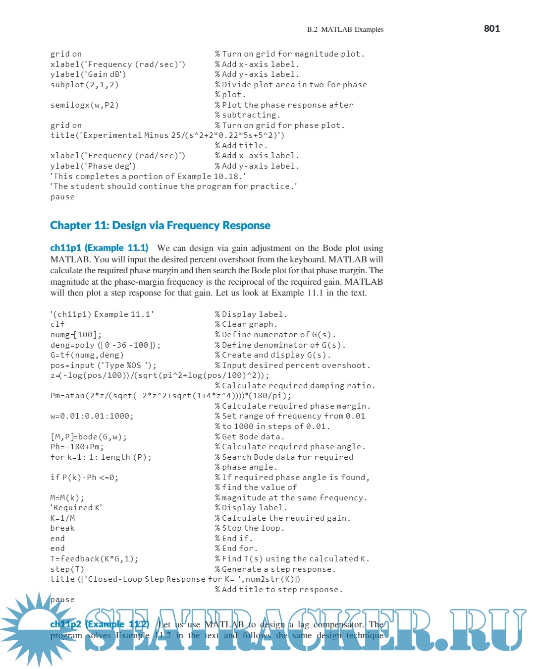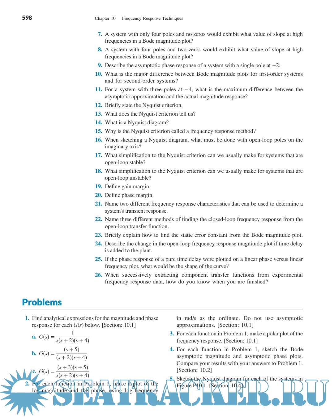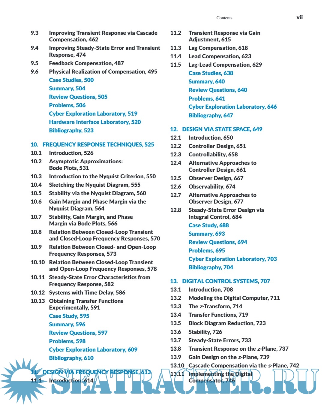 Year: 2015 Language: English Author: Norman S. Nise Genre: Reference book ISBN: 978-1-118-17051-9, 978-1-118-80082-9 Format: PDF Quality: eBook Pages count: 943 Description: This book introduces students to the theory and practice of control systems engineering. The text emphasizes the practical application of the subject to the analysis and design of feedback systems. The study of control systems engineering is essential for students pursuing degrees in electrical, mechanical, aerospace, biomedical, or chemical engineering. Control systems are found in a broad range of applications within these disciplines, from aircraft and spacecraft to robots and process control systems. Control Systems Engineering is suitable for upper-division college and university engineering students and for those who wish to master the subject matter through self-study. The student using this text should have completed typical lower-division courses in physics and mathematics through differential equations. Other required background material, including Laplace transforms and linear algebra, is incorporated in the text, either within chapter discussions or separately in the appendixes or on the book's Companion Web site. This review material can be omitted without loss of continuity if the student does not require it.