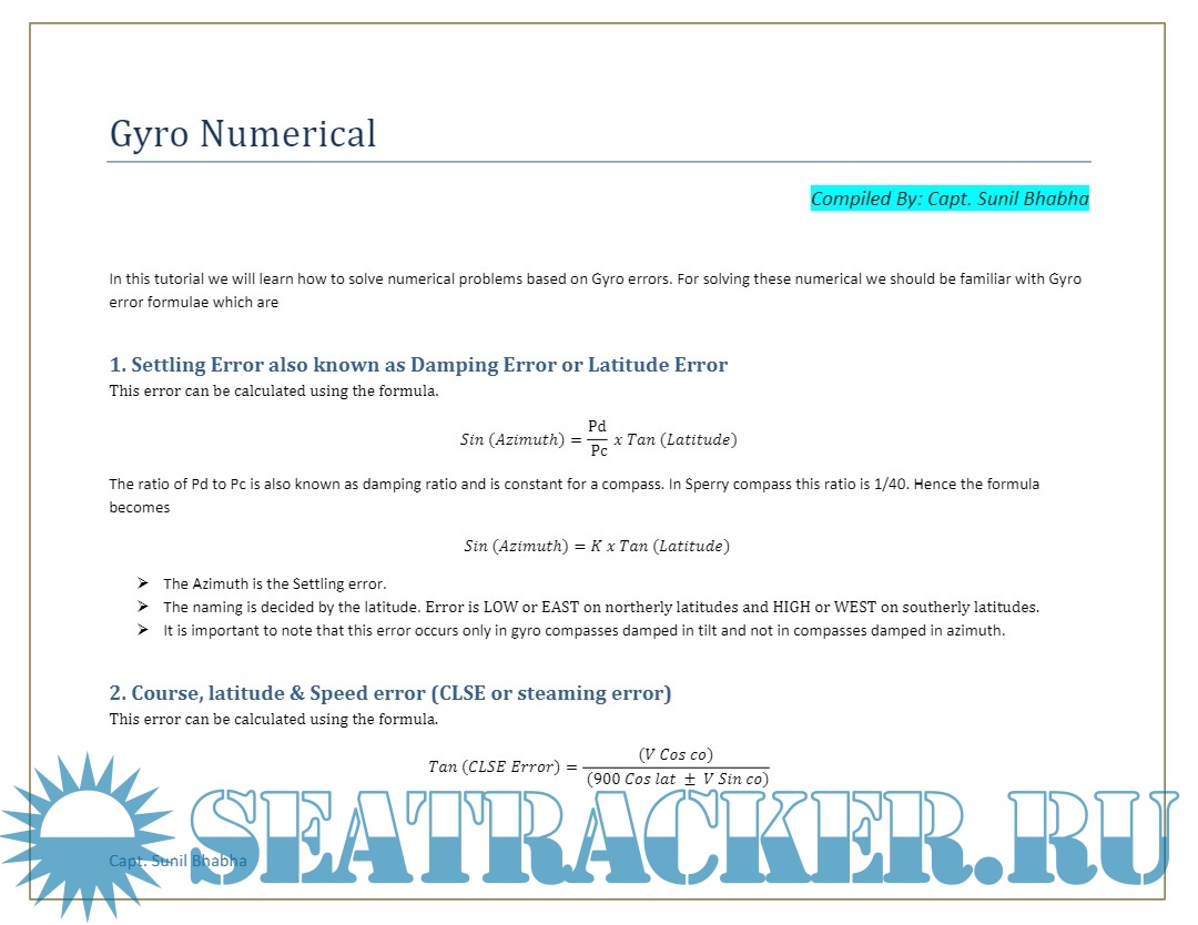 Gyro Compass Notes & Solved Numericals for Phase II (Chief Mate F.G.) Mercantile Marine Department…