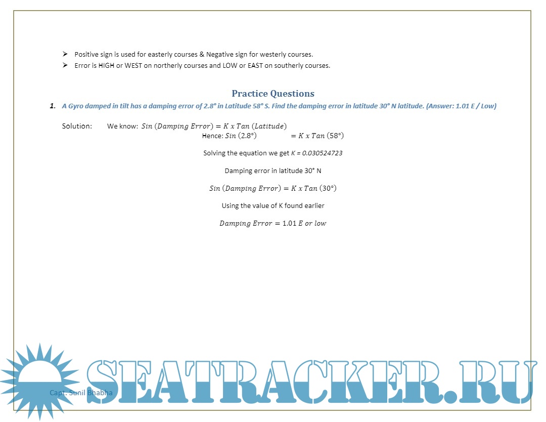 Solved Gyro Numericals - Chief Mates Phase II - Mahbub Hasan [2023, PDF]